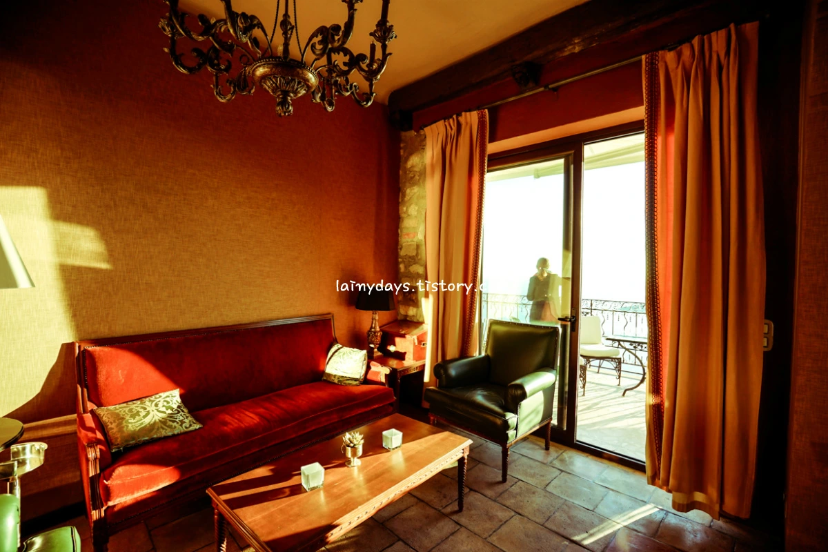 에즈 빌리지의 가장 높은 곳에서 황홀경에 빠져있을 때 즘 안내원이 객실이 준비되었다고 귀띔해준다. 안내원의 뒤를 따라가서 만난 객실은 바로 이런 모습이다. 어느 영화에서나 본 '중세 귀족의 침실'이 바로 눈앞에 펼쳐진 순간이다.