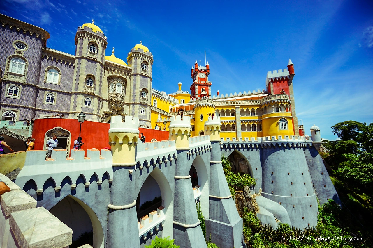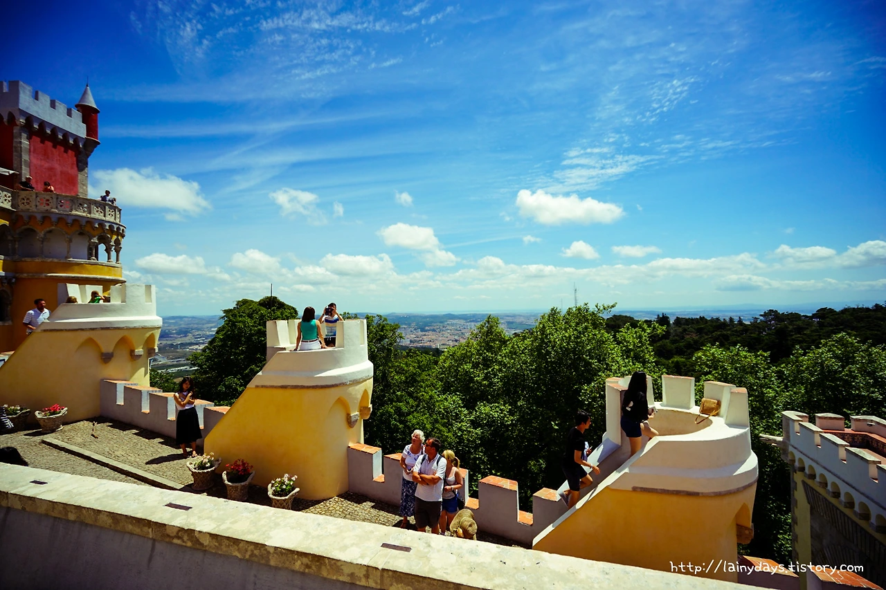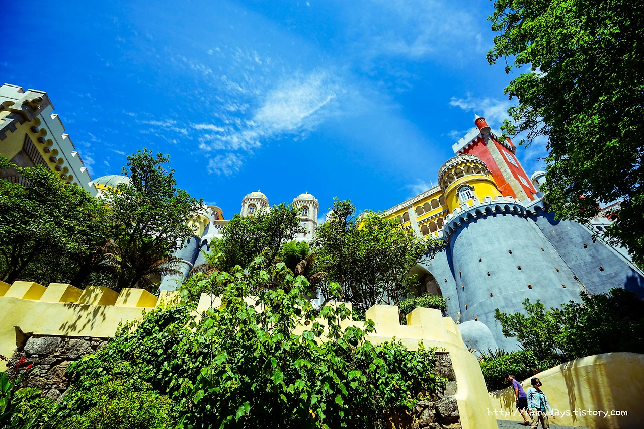 링크를 타고 들어가기 귀찮은 분을 위한 보너스 사진. 무어인의 성에서 올려다본 페나성의 모습. 정말 더욱 독특하다. 아래에서부터 살펴보면 녹색의 숲과 빨갛고 노란 건물, 그리고 위로는 파란 하늘. 초록 빨강 노랑 파랑. 아.. 찬란하다.