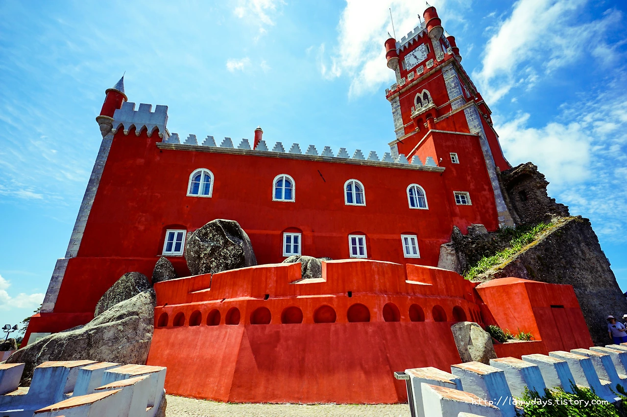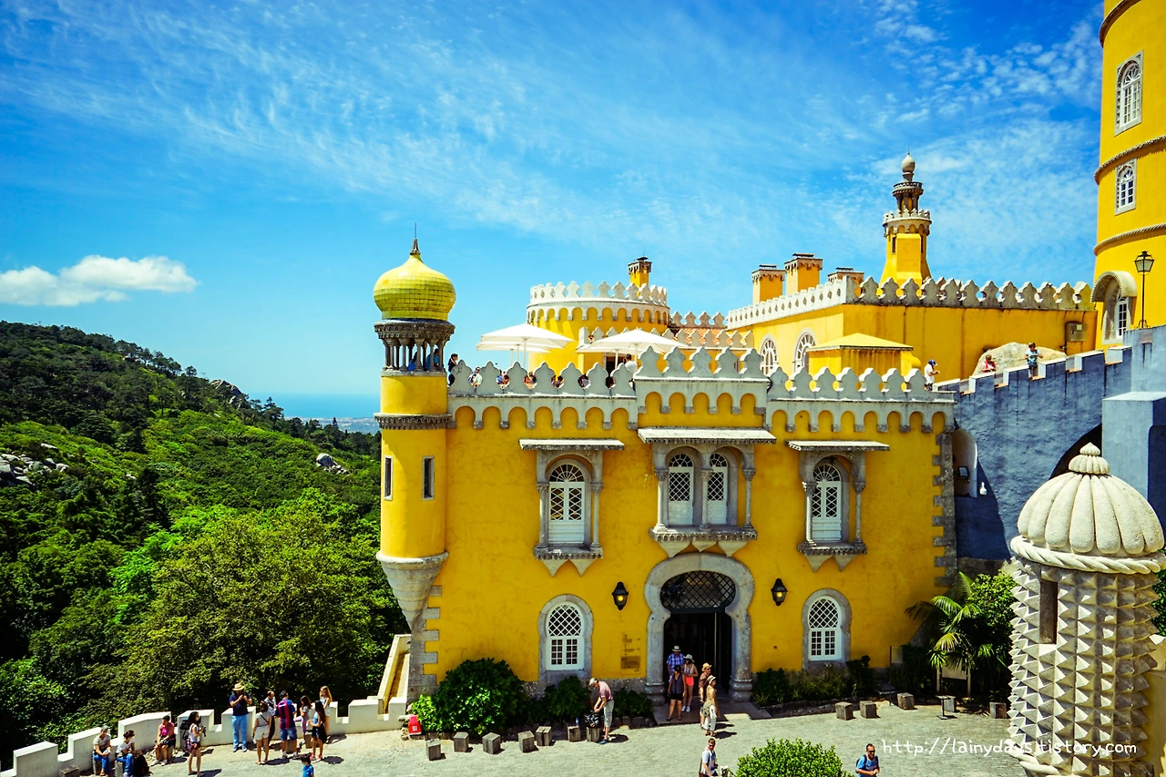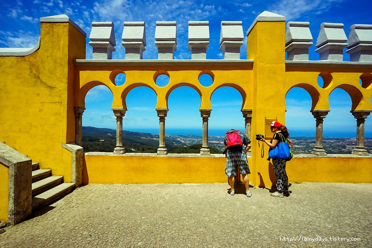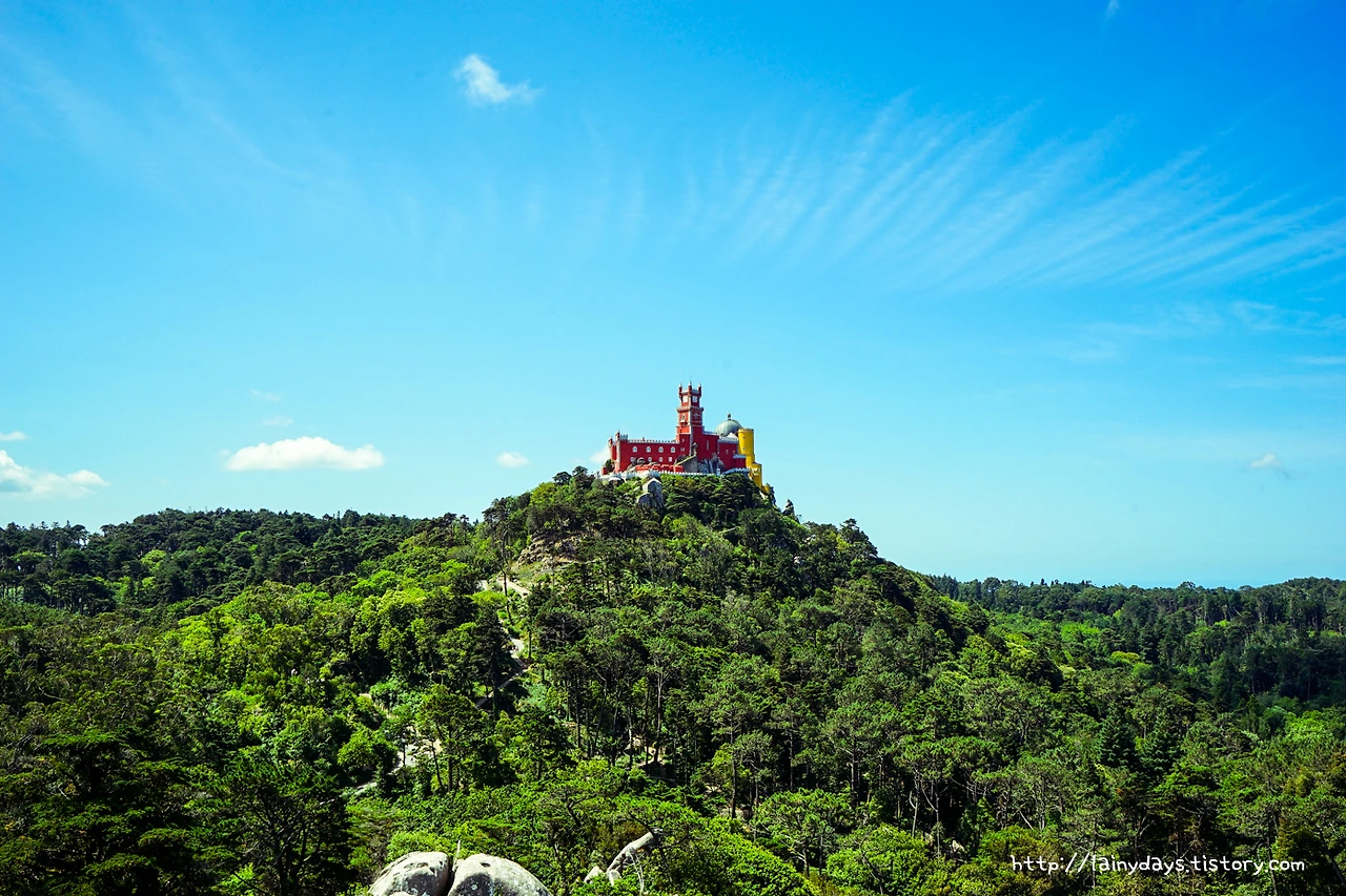 링크를 타고 들어가기 귀찮은 분을 위한 보너스 사진. 무어인의 성에서 올려다본 페나성의 모습. 정말 더욱 독특하다. 아래에서부터 살펴보면 녹색의 숲과 빨갛고 노란 건물, 그리고 위로는 파란 하늘. 초록 빨강 노랑 파랑. 아.. 찬란하다.