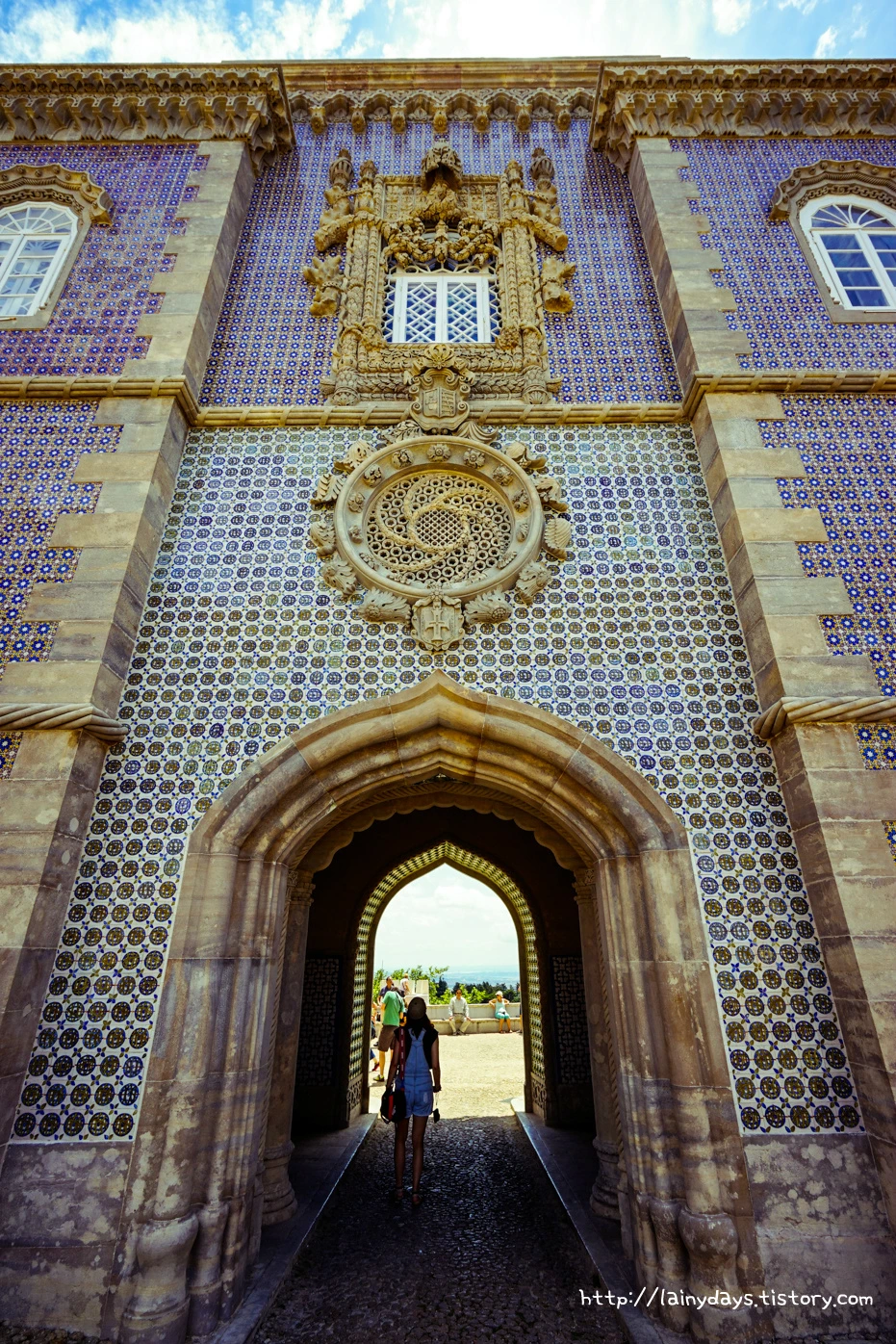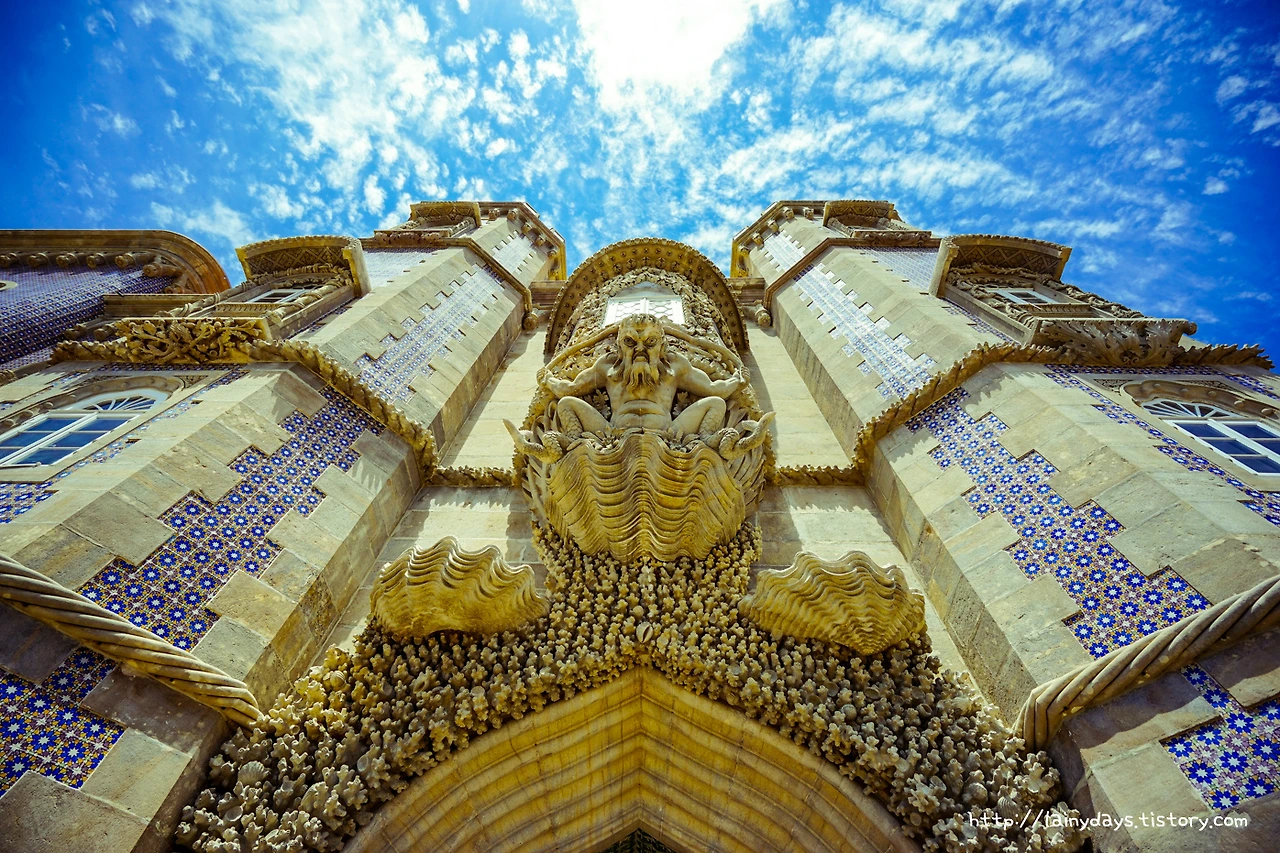 인상 더러운 조각상을 지나 성 안으로 들어온다. 그리고 뒤를 돌아보면 정말 또 한번 깜짝 놀랄 정도로 화려한 장식성 강한 꾸밈새가 눈에 들어온다. 어디서부터 설명해야 할지조차 감이 오지 않는 모습이다. 정교하고 정성스럽게 이어 붙인 아줄레주는 둘째치고 사진 중앙에 있는 원형 장식과 그 위에 있는 창틀 장식은 화려함의 끝을 보여주는 동시에 막일의 끝을 보여준다. (왕권이 무섭구나)