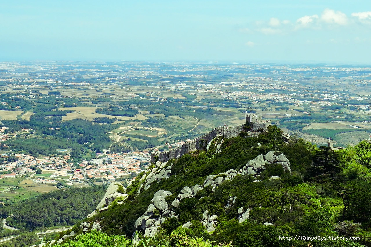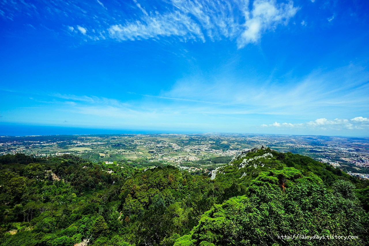 계속 걷다 보면 페나성의 뒤편에 닿아 이런 풍경을 볼 수 있다. 저~멀리 바다가 보이며 그 앞으로 신트라 시내의 전경이 보이고 더 앞에는 무어인의 성이 보인다. 무어인의 성도 꽤나 높은 곳에 위치하였는데 페나성은 그보다 더 높은 곳에 있는 것. 거대했던 무어인의 성이 새삼 무척이나 작아 보인다.