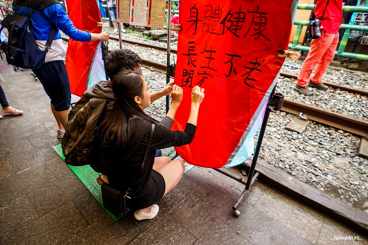 열차는 한 시간에 한 대 꼴로 스펀에 진입하기 때문에 그 한 시간 동안은 자유롭게 천등을 날릴 수 있다. 누군가가 소중한 바람을 적은 천등이 하늘 높이 향하고 있다. 하늘을 날지 못하는 인간은 하늘로 솟구치는 것들을 예부터 참 많이도 만들어냈다. 연이 되었든 천등이 되었든 열기구가 되었든...하늘로 향하는 행위에는 많은 의미가 담겨 있다. 불가능의 극복, 이루지 못하는 것을 향한 의지 등등..