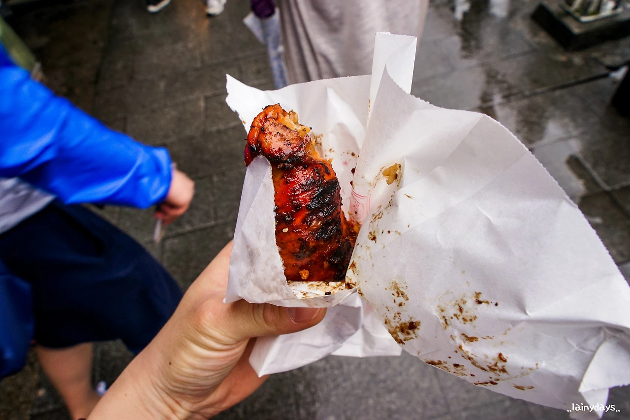 닭날개 볶음밥은 맨 아래 부분이 조금 애매하지만 그 부분을 제외하고는 굉장히 맛있다. 닭날개 살도 두툼하고 안에 들어있는 볶음밥도 맛있다. 다만, 다 먹고 난 뒤가 조금 문제인데 이것을 버릴만한 곳이 마땅치 않아서 계속 가방 겉 주머니에 넣고 다녀야 했다. 참고로, 닭날개 볶음밥 외에도 즐길 수 있는 길거리 음식은 다양하다.