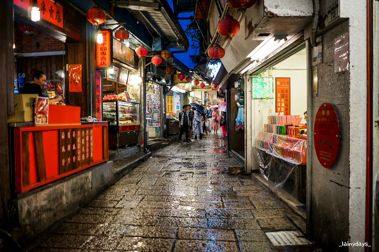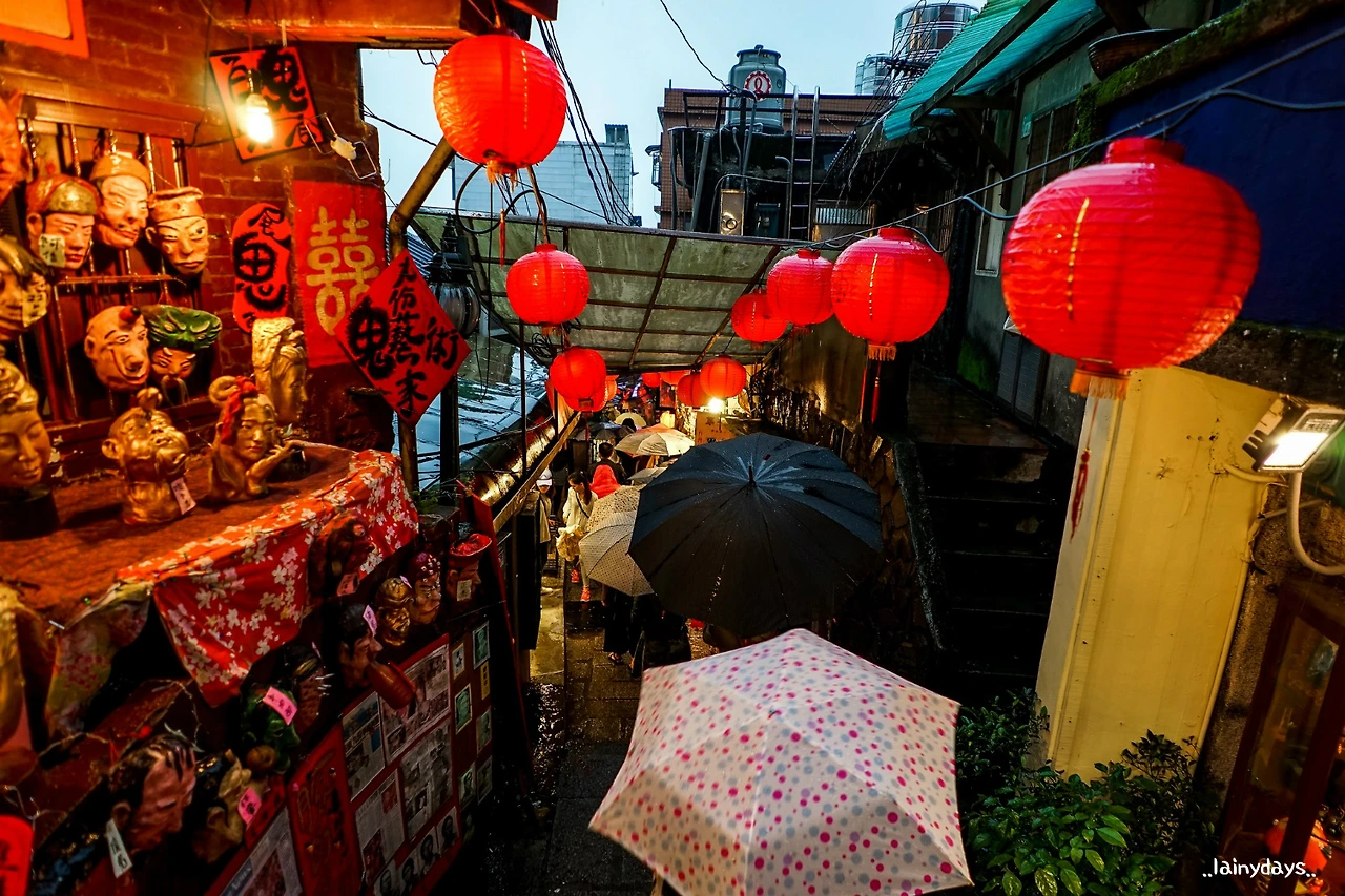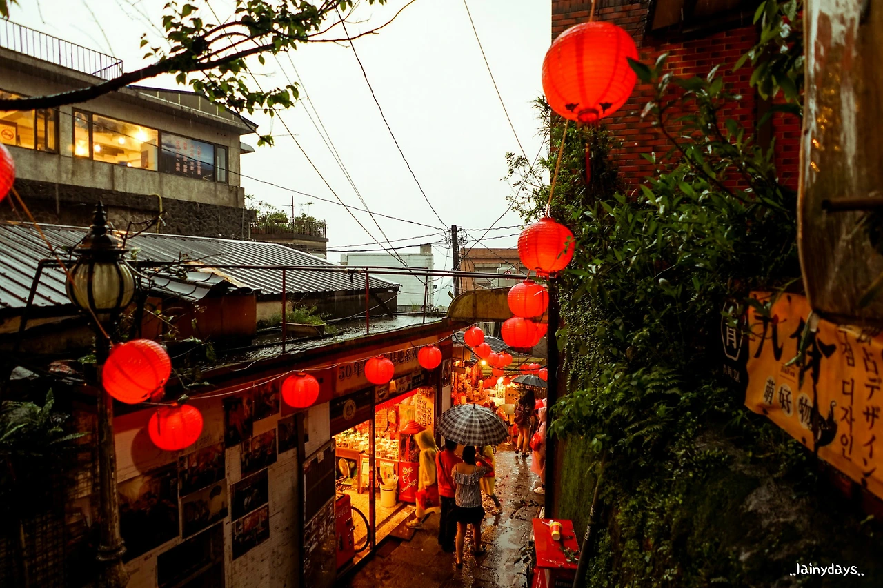 날이 점점 더 어두워지기 시작하고 비는 그쳤다가 내리다가를 반복하고 홍등은 서서히 그 붉은 빛을 밝히고 있다. 좁은 골목길에 우산을 펼치니 지나가는게 수월치는 않았다. 자주 계단 옆 가게 앞에 서서 지나가는 행인들에게 길을 터줘야 하는 일이 발생했다.하지만 이런 꽉 들어찬 밀도감은 정말 좋다. 비가 와서 사진찍는건 불편하지만 사진은 얼추 이쁘게 나올 분위기였다.