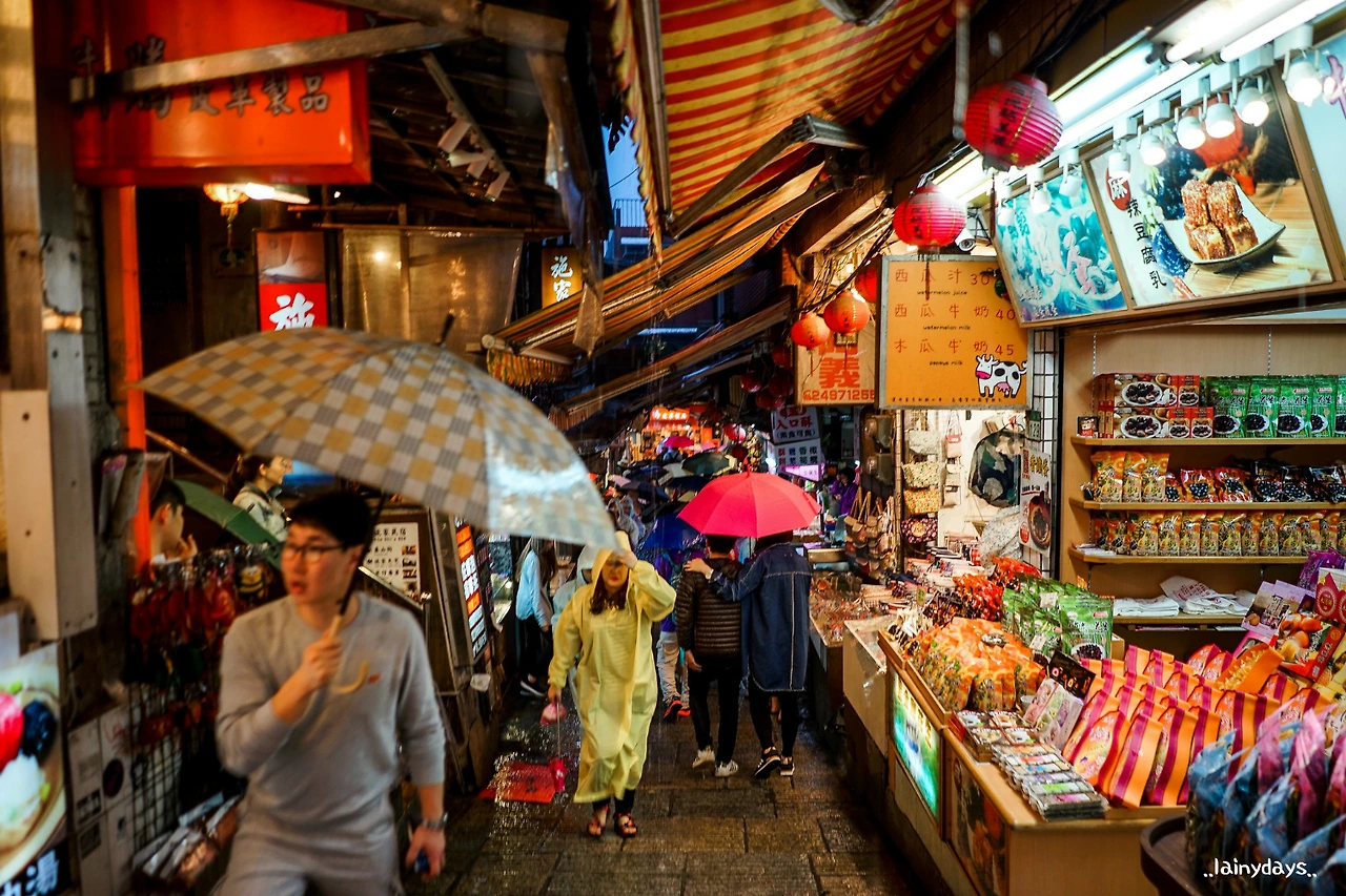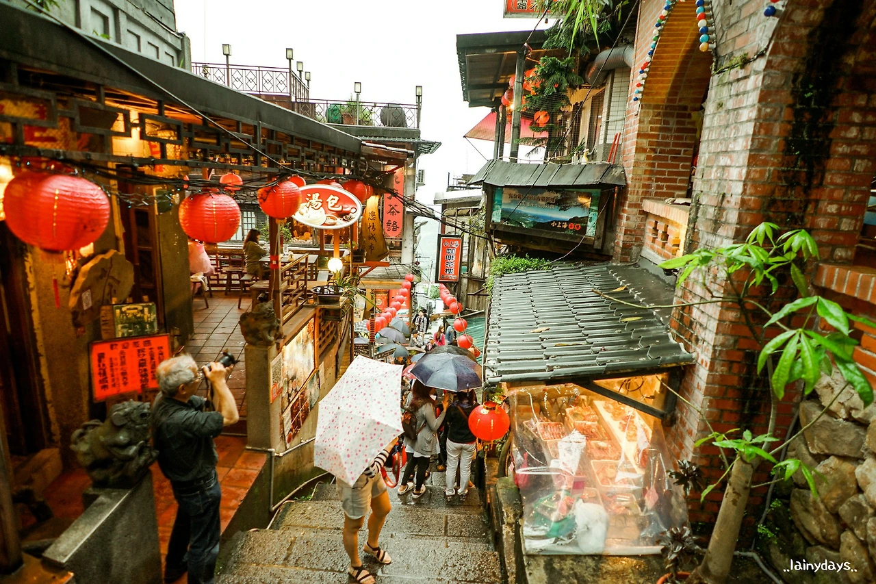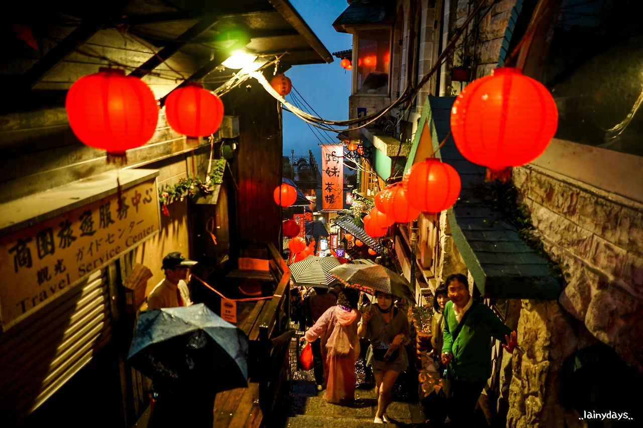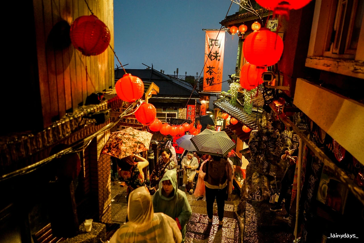 날이 점점 더 어두워지기 시작하고 비는 그쳤다가 내리다가를 반복하고 홍등은 서서히 그 붉은 빛을 밝히고 있다. 좁은 골목길에 우산을 펼치니 지나가는게 수월치는 않았다. 자주 계단 옆 가게 앞에 서서 지나가는 행인들에게 길을 터줘야 하는 일이 발생했다.하지만 이런 꽉 들어찬 밀도감은 정말 좋다. 비가 와서 사진찍는건 불편하지만 사진은 얼추 이쁘게 나올 분위기였다.