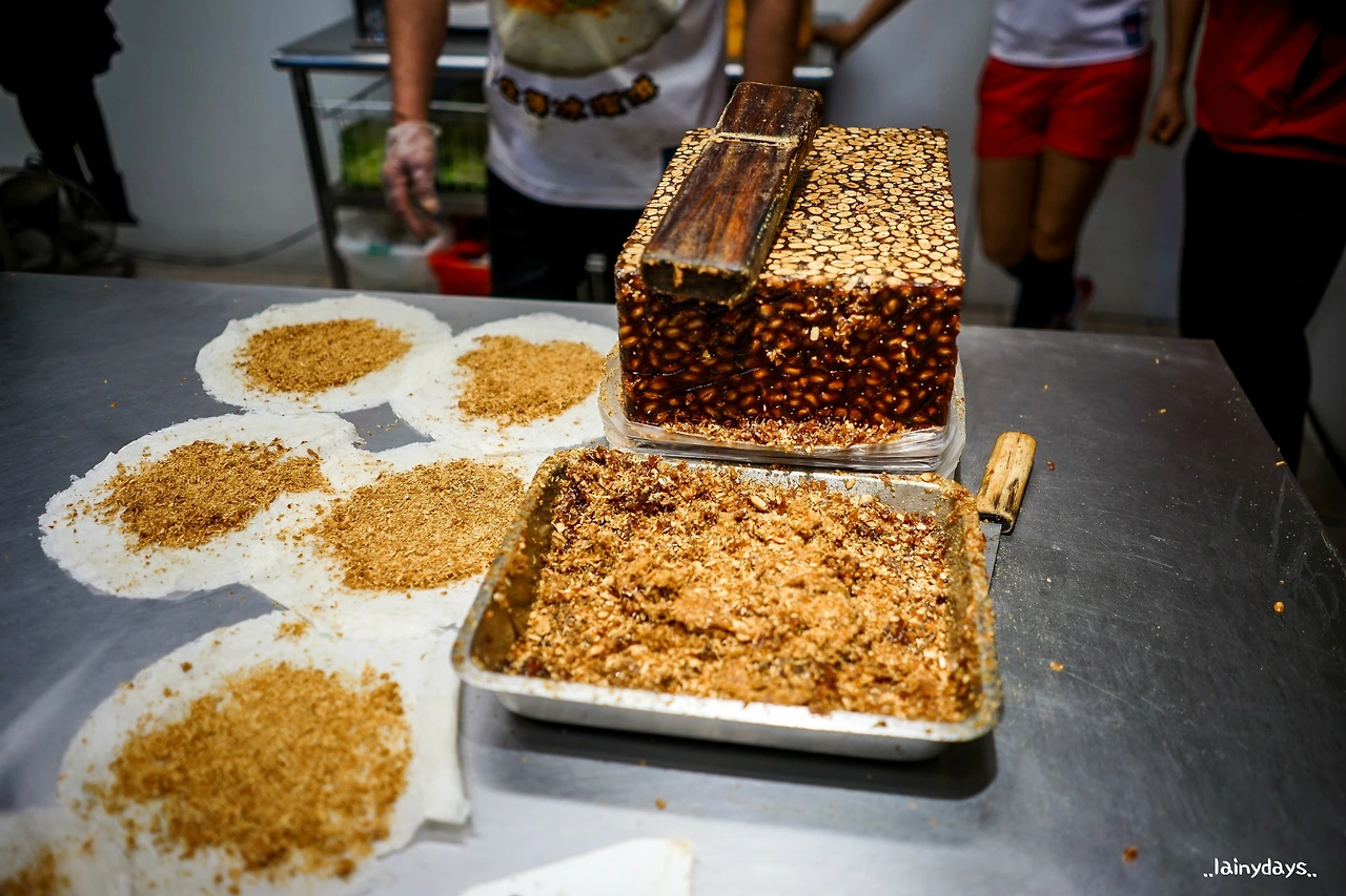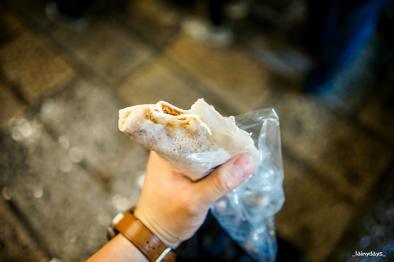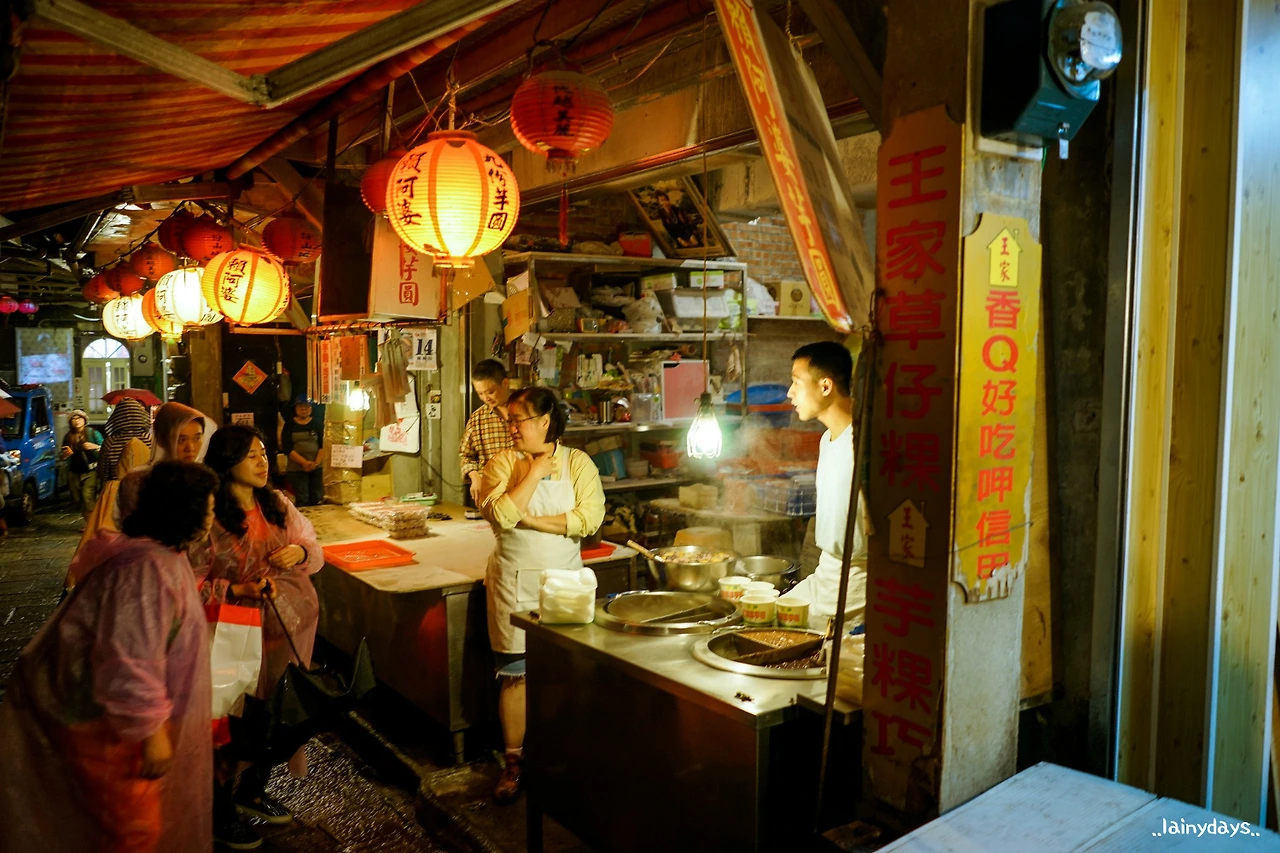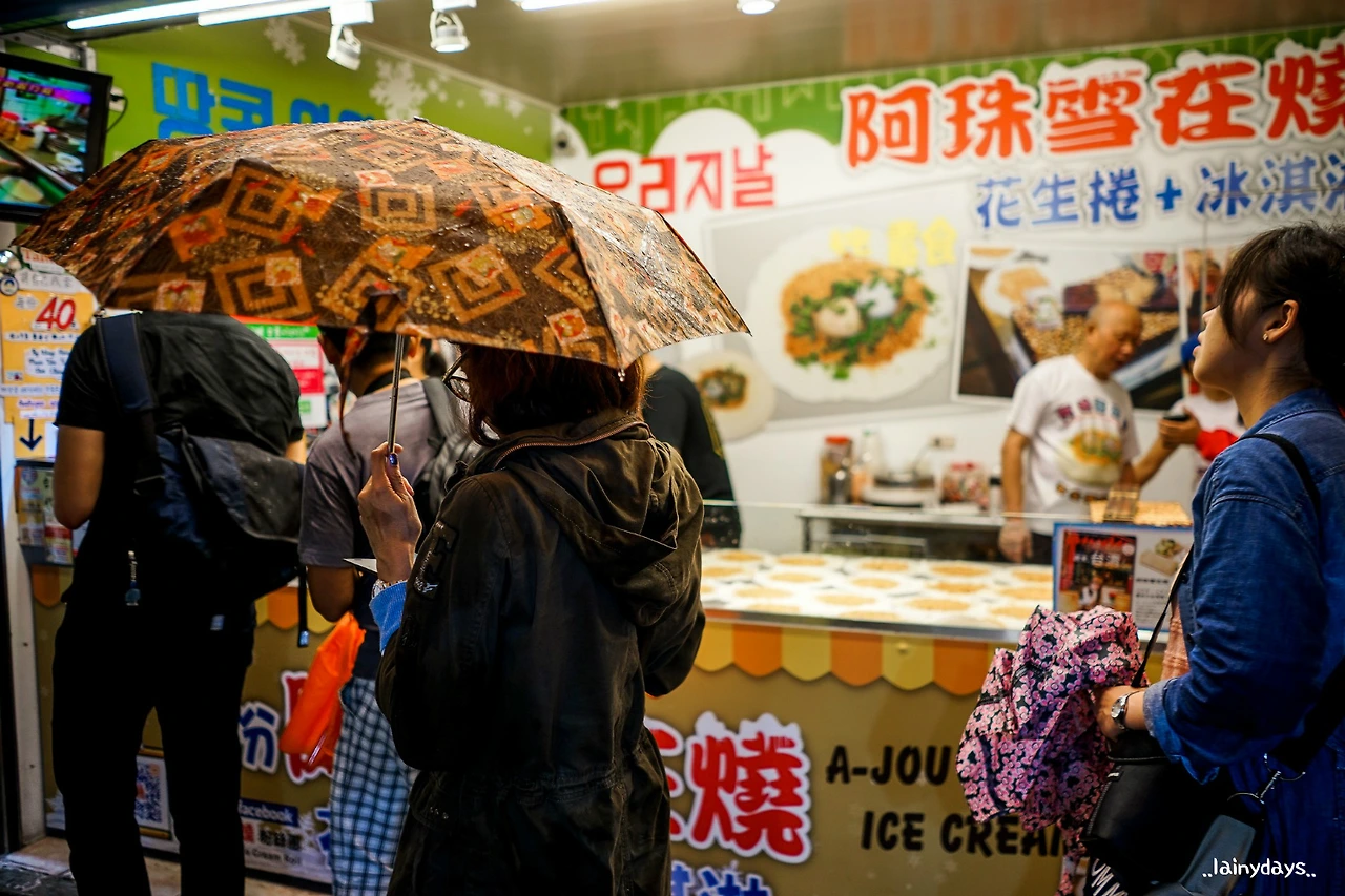 계속해서 가게와 사람들로 가득찬 골목길이 이어진다. 비가 내리는 골목길 풍경도 제법 괜찮은 것 같다. 회색과 붉은색의 대비가 예쁘게 나온다. 한참 내려가다가 지우펀의 명물 땅콩 아이스크림을 발견했다.