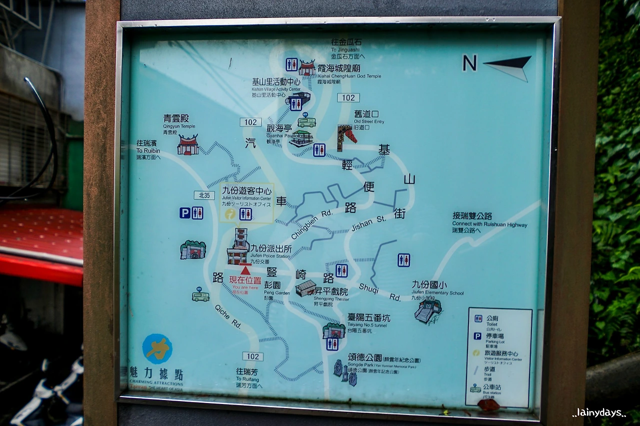 맨 아래 사진은 지우펀 지도다. 음..아까 내가 묘사한 힘 력과 많이 다른 것 같지만..다녀온 분들은 대략 고개를 끄덕이실듯..아무튼 지우펀으로 올라가는 길은 여러개가 있다. 지도에서 보다시피..자칫 잘못하면 가보지도 못하는 곳이 생길 수 있으니 지우펀에 가게 되면 꼼꼼하게 돌아다니자