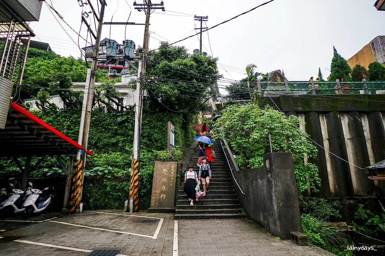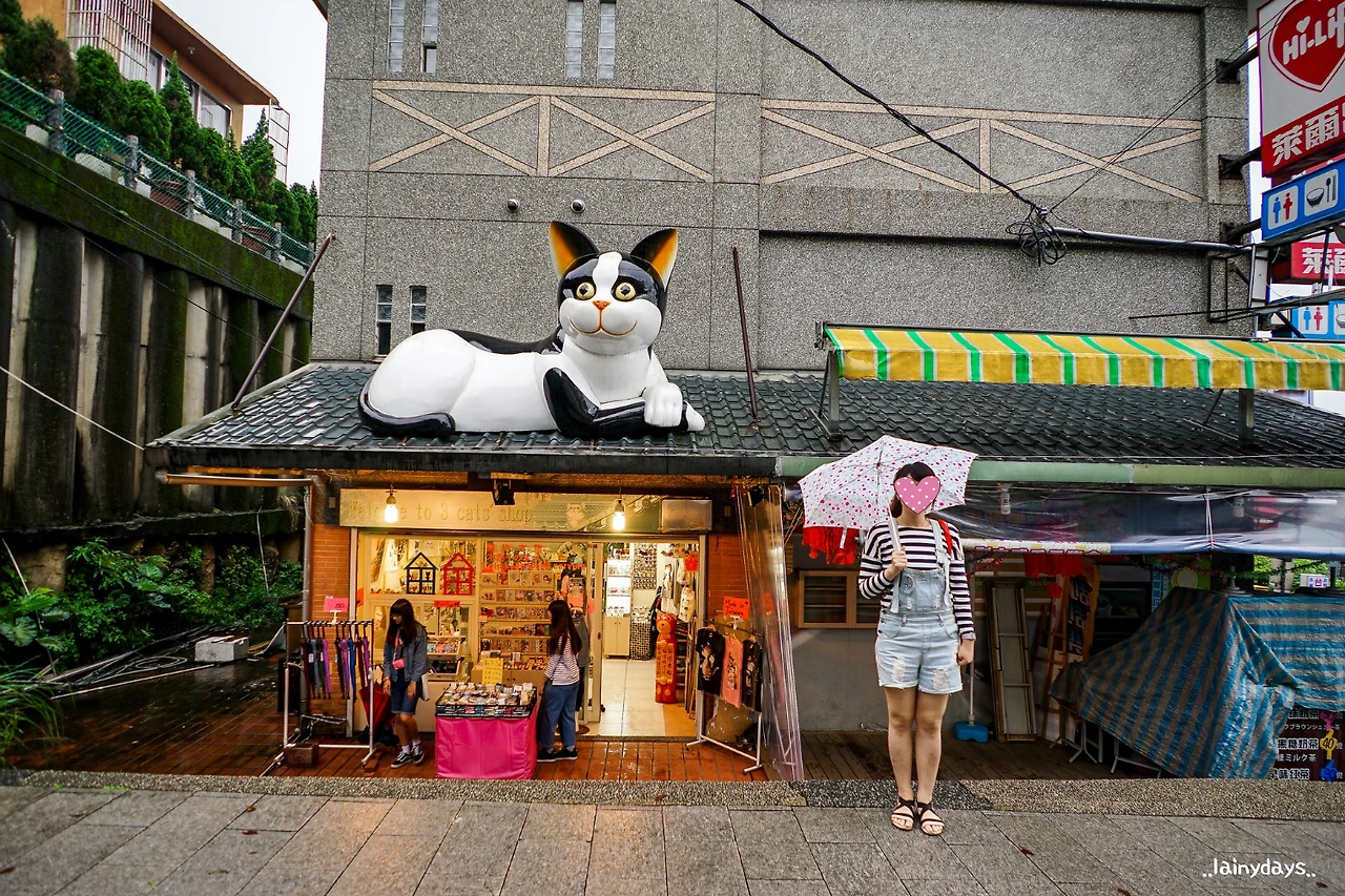 지우펀으로 올라가는 계단이 보인다. 괜히 지옥펀이 아니다. 사람이 많아서도 지옥인데, 계단이 많아서도 지옥이다. 그러니 이곳에 오기 전엔 체력을 많이 비축해두는 것이 좋다. 이 때 부터 비가 조금씩 내리기 시작했고, 고양이 마을 허우통에서 보았던 지붕 위 고양이를 여기서도 다시 만났다.
