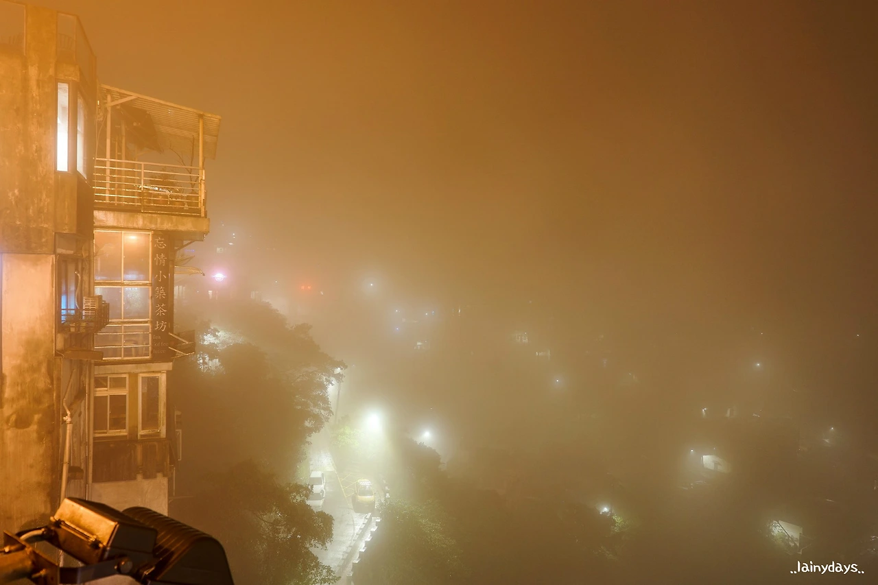 예쁜 풍경이 나올 것 같아서 아까 보았던 찻집으로 다시 왔다. 규모가 거대하고 홍등이 여러개 달려있어서 야경도 제일 멋지다. 덕분에 밤이 되면 이곳 근처는 찻집을 보려는 사람들로 인산인해를 이룬다. 한 5분 정도 구경하다보니 갑자기 안개가 짙어진다. 덕분에 뭔가 몽환적인 분위기의 찻집을 담을 수 있었다.