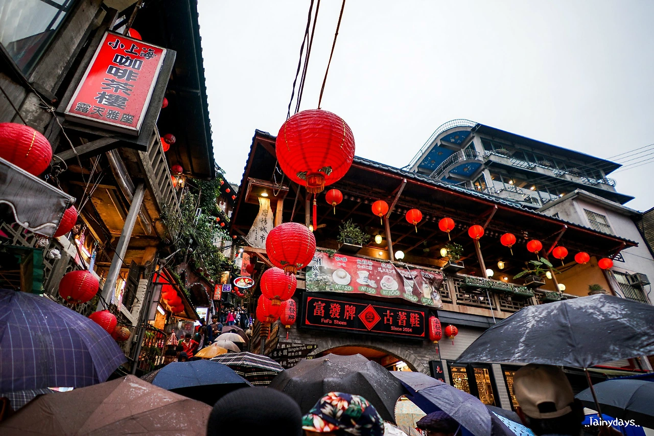 찻집에서 커피를(응?) 마시고 잠시 쉬며 전열을 정비하고 다시 골목길로 나왔다. 비가 조금 잦아든 모습. 많이 상업화되긴 했는데 지우펀, 상당히 예쁘다. 붉은 등이 하늘에 매달린 풍경과 더불어 고풍스러운 찻집과 예쁜 건물들도 많고 아기자기한 소품을 파는 곳과 맛있는 먹거리를 파는 곳도 많다. 이정도면 여길 안오는게 이상할 정도.