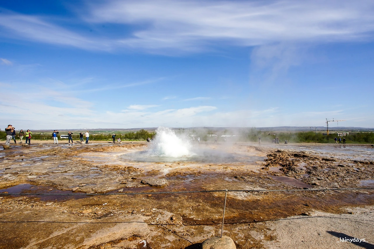대신 근처에 있는 strokkur가 활발하게 활동중이라고 하니 실망은 금물! 물기둥이 대략 1~30미터 정도로 앞선 게이시르에 비해 낮긴 하지만 5~10분 간격으로 터진다 하니 좋지 아니할 수 없다! 게이시르 근처에는 호텔도 있어서 1박을 하기도 괜찮을 것 같았다.