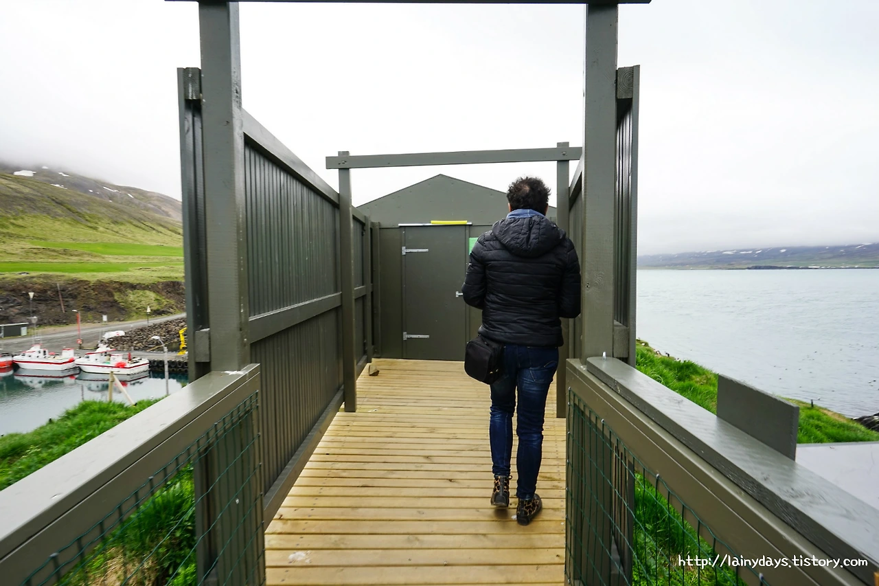 아이슬란드의 퍼핀 서식지 중 접근성이 가장 좋다는 곳이 디르홀레이이인데, 내가 볼 땐 동부의 이 서식지가 훨씬 더 많은 수의 퍼핀을 손쉽게 관찰할 수 있는 것 같다. 여기서 팔자에도 없는 퍼핀을 여기서 실컷 본 것 같다. 나름 꼭대기에 올라가면 저런 구조물도 있다. 안으로 들어가면 의자와 창문이 있어 추위와 바람을 피해 편하게 앉아서 퍼핀을 볼 수도 있다.