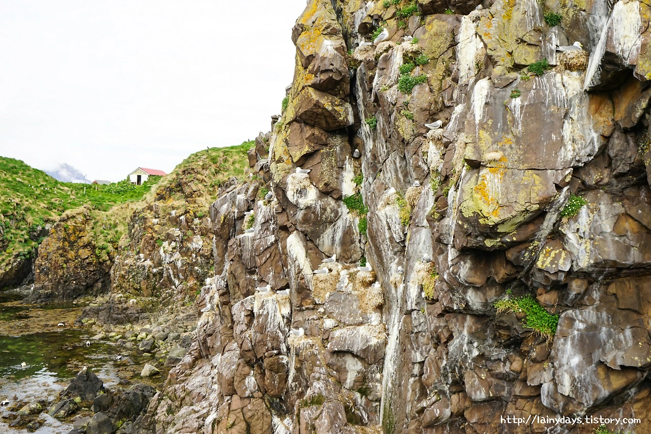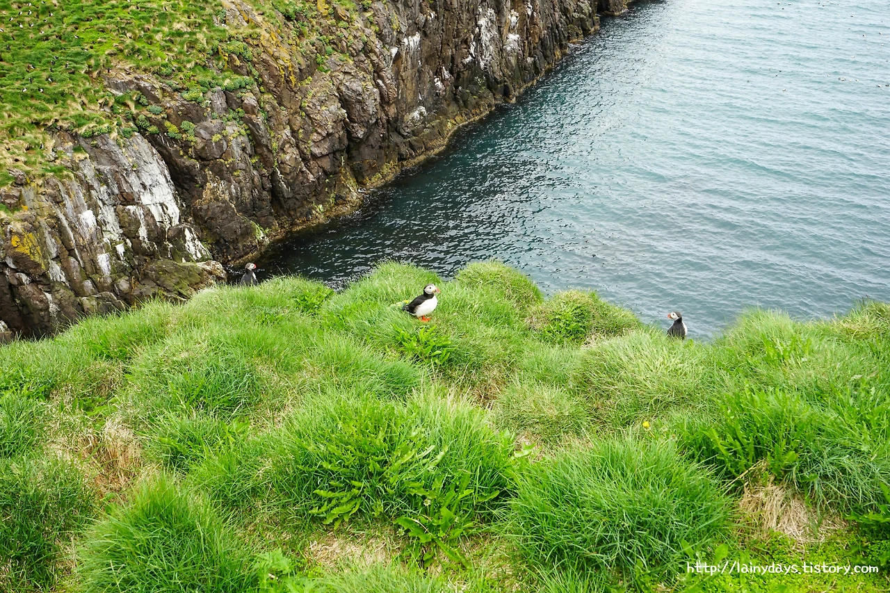 물이 참 맑고 색이 예쁘다. 실제로 어업을 하기는 할까? 싶을정도로 사람도 없고 고요했던 이 곳..반대방향 절벽에선 퍼핀이 아닌 조금 더 다양한 새들을 관찰할 수 있다.