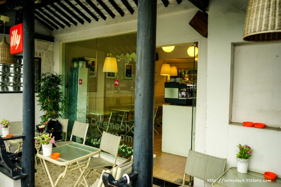 그중에는 시탕 마을 최고의 뷰를 자랑하는 illy 커피숍도 있다. 마을 2/3 지점에 있는데 덥고 습한 수향 마을의 날씨에서 벗어나 시원한 에어컨 바람 쐬며 맛이 검증된 일리 커피와 함께 마을 경치를 즐기며 쉬기 좋은 곳이다.