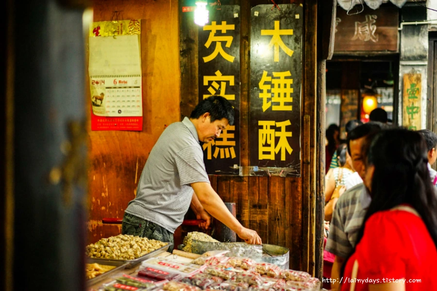 신경 쓰지 않으면 자칫 그냥 지나 칠정도로 작은 입구를 들어가면 또 사람 세명 겨우 나란히 걸을만한 좁다란 골목길이 나온다. 그 안으로 쭈욱 들어가면 그제야 비로소 '시탕에 오신 걸 환영합니다!'라고 티를 내는 듯 중국 특유의 향이 나를 반긴다.