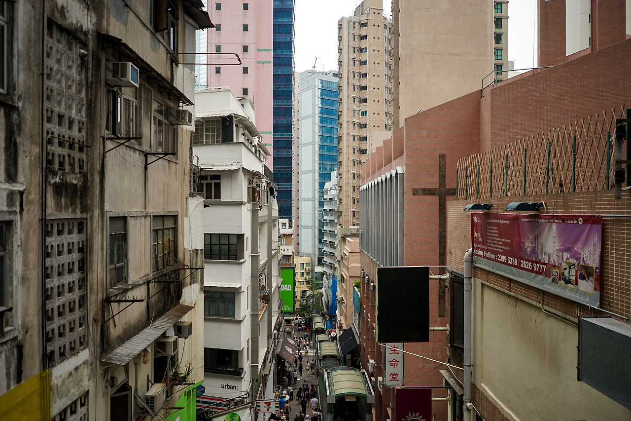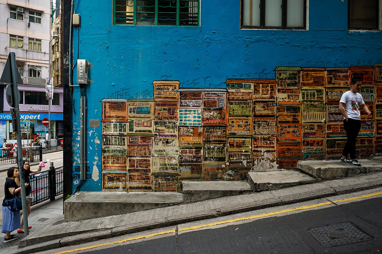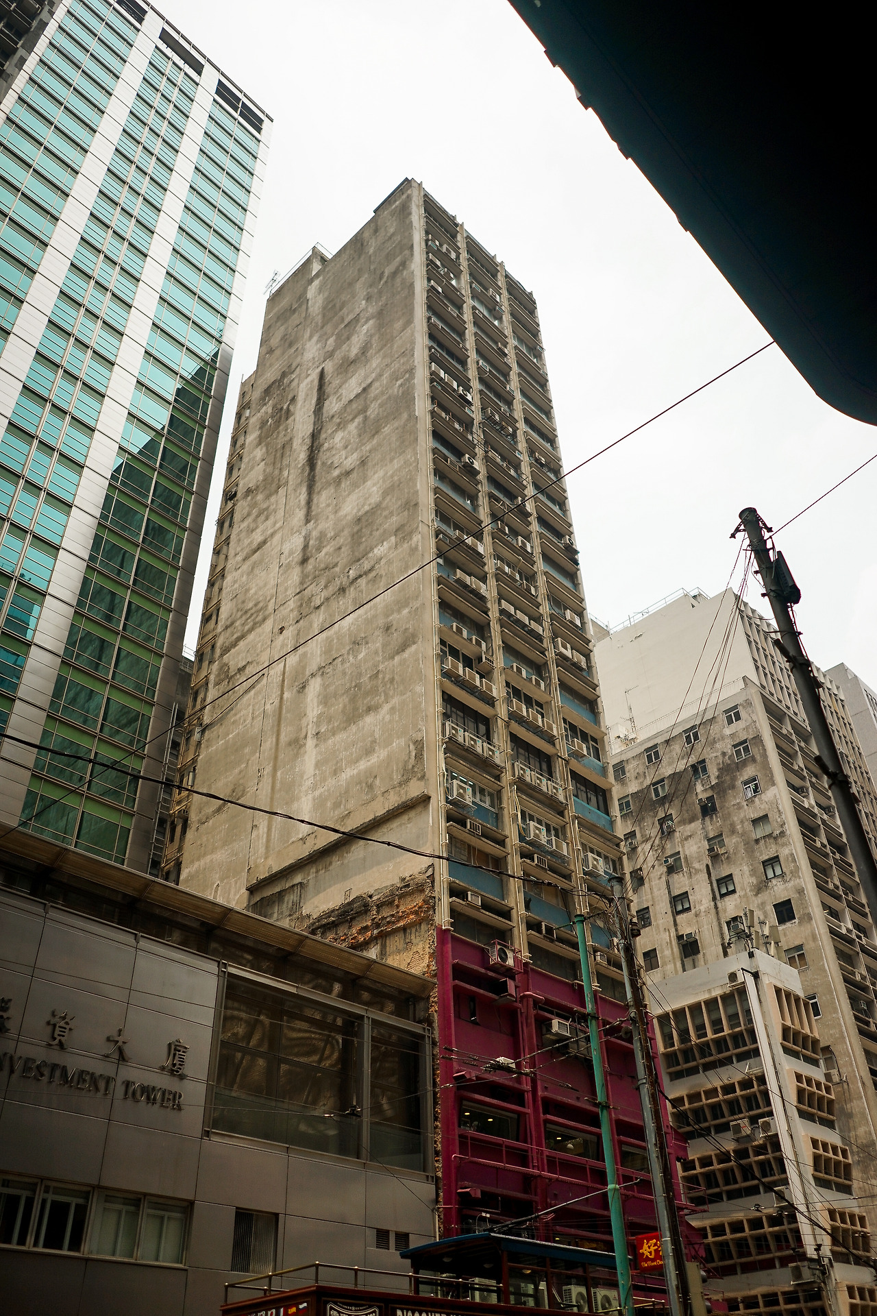 좁고 기다란 낡은 빌딩이 현대적인 초고층 건물 사이에 아슬아슬하게 서 있는 풍경은 홍콩의 상징과도 같다. 처음 홍콩에 왔을 땐 정말 충격과도 같았던 장면이었지만. 땅덩어리는 좁고 사람은 많으며 집값이 비싸 쉬이 재건축이 되지 않는 우리네 풍경과도 닮아있다.