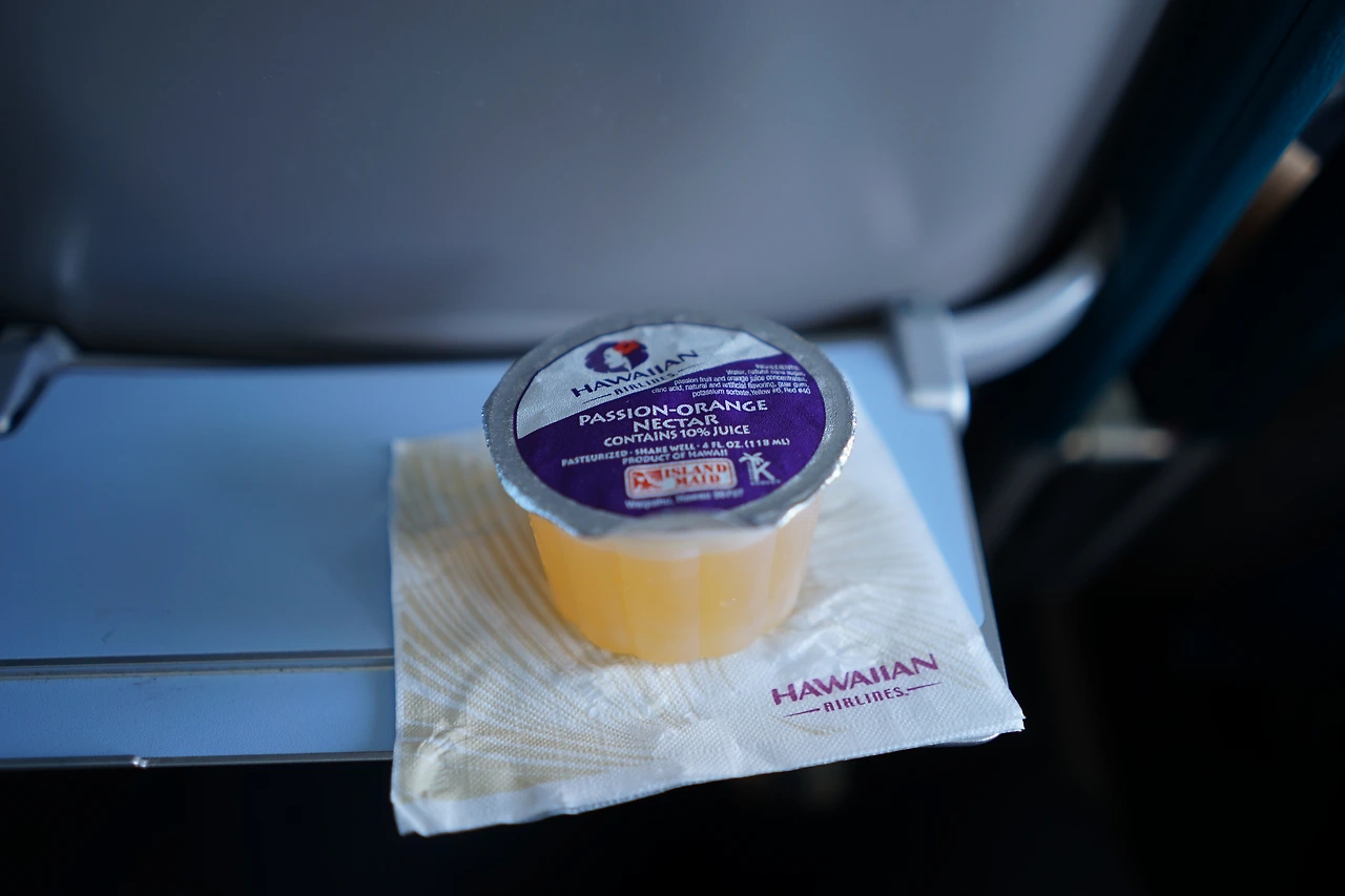 2018년 하와이 오아후 섬에서 마우이 섬으로 갈 때 하와이안 항공에서 제공해준 기내식?이다. 이걸, 기내식이라 할 수 있는진 모르겠지만.. 50분 정도 되는 비행에 목마르지 말라고 준 음료다. 생각보다 맛은 별로였는데 이렇게 가볍게 주는 기내식은 꽤나 즐겁다.
