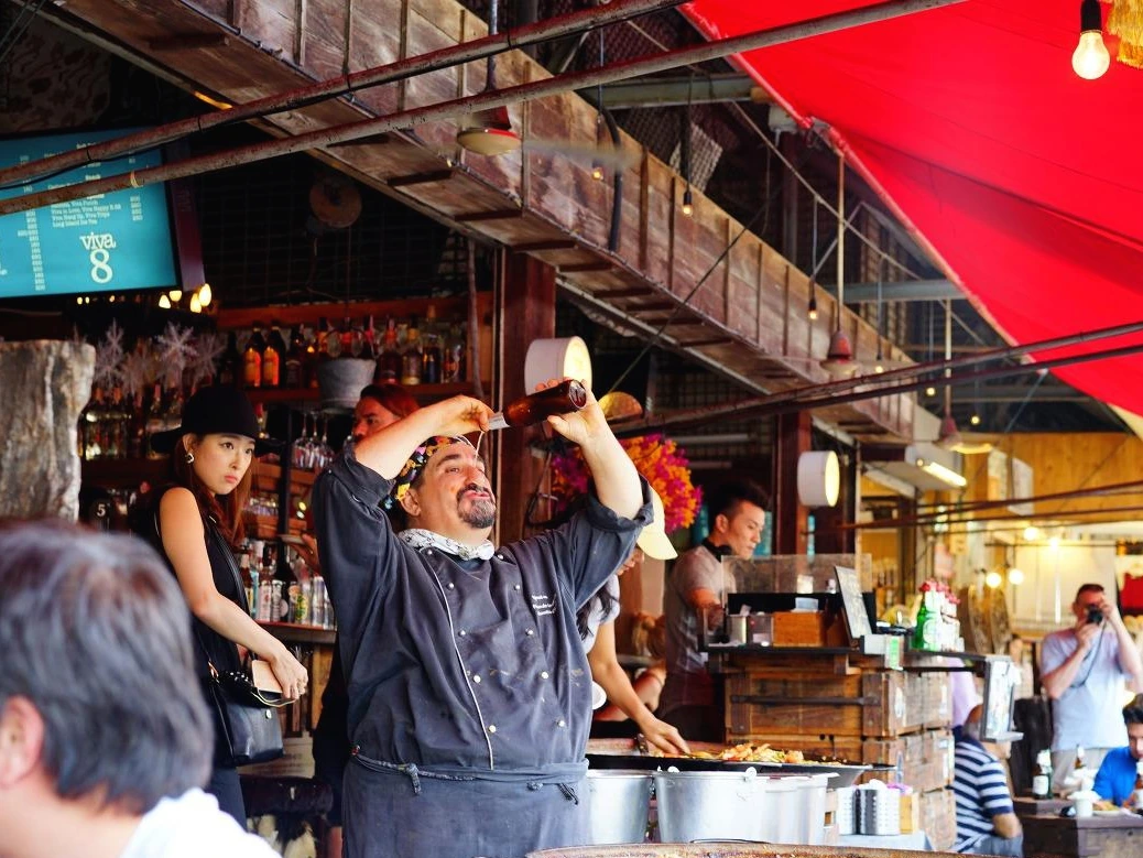 먹음직스럽게 잘 요리된 음식. 실제로 보면 향까지 더해져 그냥 지나치기 어렵다. 양념 따윈 아끼지 않겠다는 기세로 탈탈 쏟아붓고 있는 상남자 아저씨는 그 유명한 소금 세프나 최현석 세프의 원조격은 되는 것 같다.