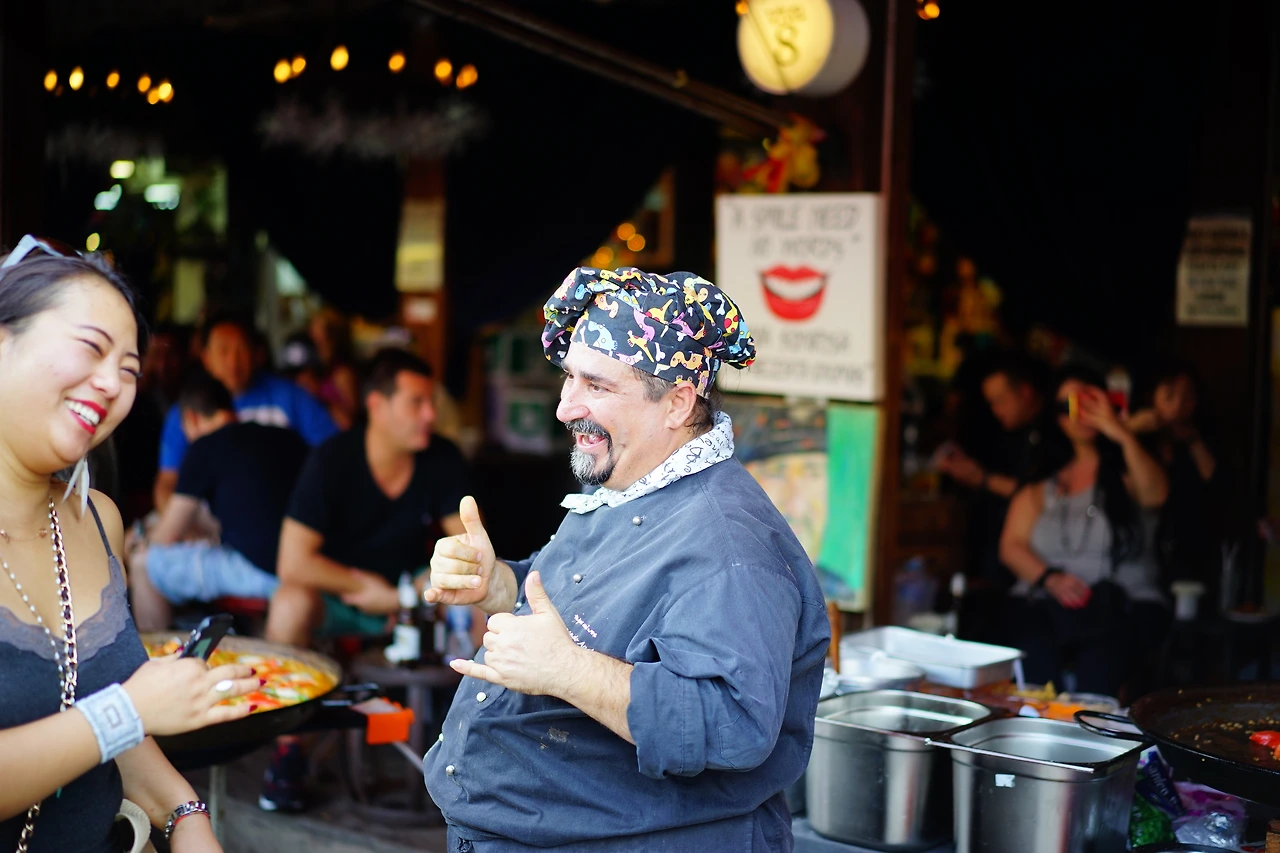 상인들의 표정은 제각각이다. 멍하게 있는 분, 지친 표정으로 있는 분, 그래도 항상 웃음을 잃지 않는 분 등 다양하다. 그중에 가장 기억에 남는 표정은 짜뚜짝 시장의 명물 빠에야 아저씨였다.
