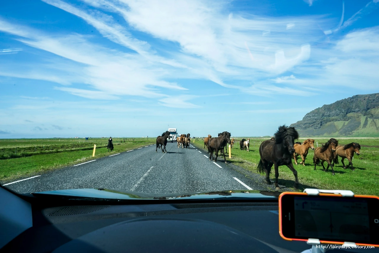 사파리도 아니고 바로 옆에서 말들이 휙휙 지나감 ㅋㅋ링로드를 여행하다 보면 이런 일을 종종 겪는다. 염소가 튀어나오거나.. 양 떼가 나오거나.. 아니면 이렇게 말들이 튀 나오거나.. 당황하지 말고 살짝 빵빵 소리 내주면