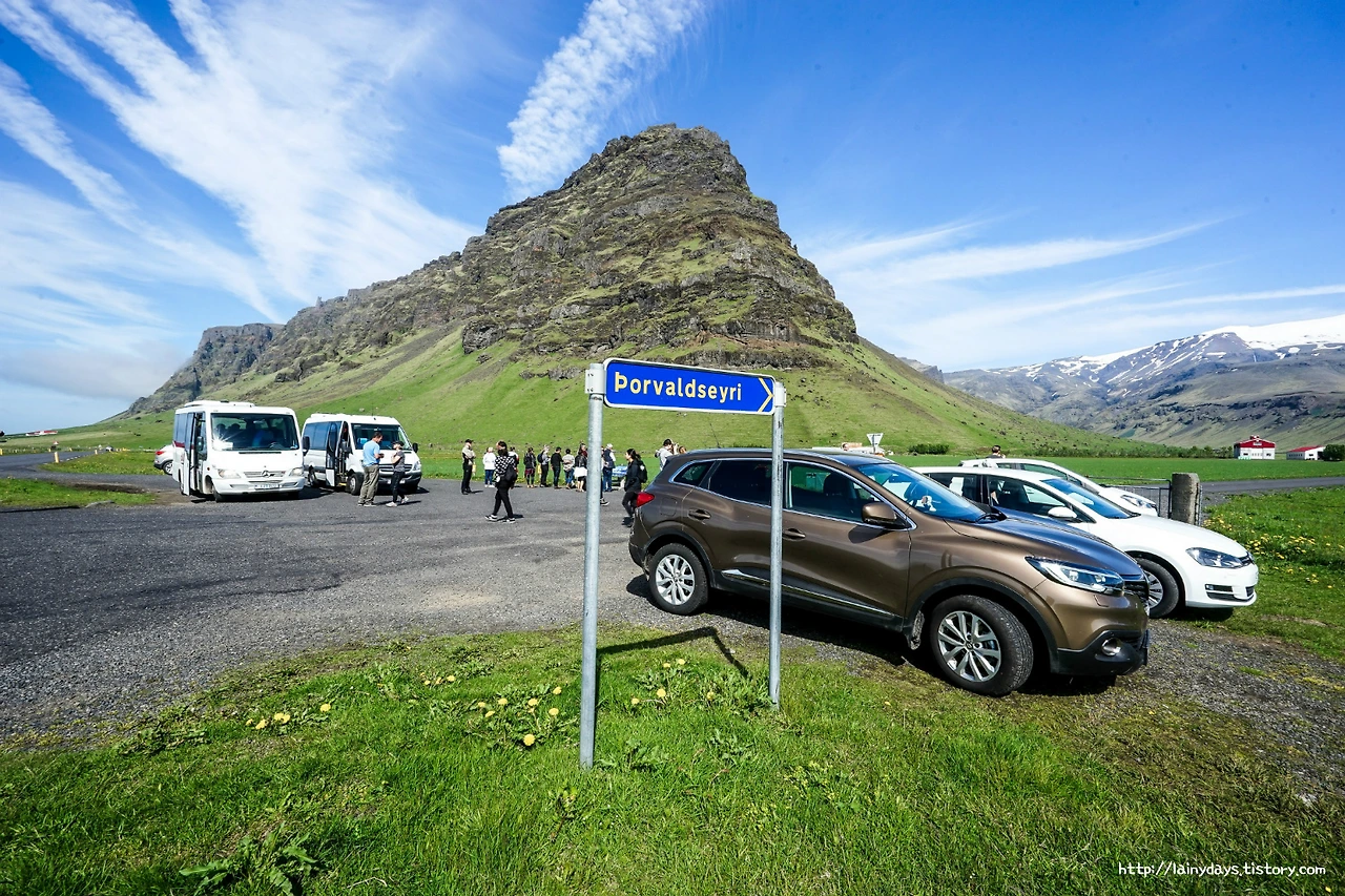 그리고 한 10여 분을 달려서 도착한 곳은 바로 포르발드세이리(porvaldseyri) 농장이다. 사실 목적을 갖고 방문한 곳은 아니고 아무 생각 없이 지나가다가 관광버스니 뭐니 사람들이 뭉게뭉게 모여있길래 내렸다.