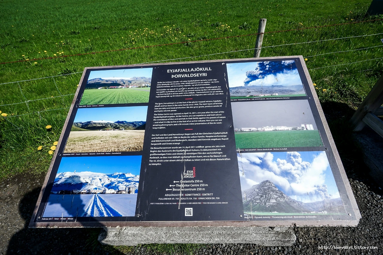 아무튼, 이 평범해 보이지 않는 농장이 유명해진 데엔 그럴만한 이유가 있다. 단지 저 풍경 때문은 아니고.. 이곳은 정확히 얘기하면 GESTASOFA마을의 þorvaldseyri농장이며 바로 근처에 EYJAFJALLAJOKULL(뭐.. 한국어로 발음할 자신이 없다..)이 있다.