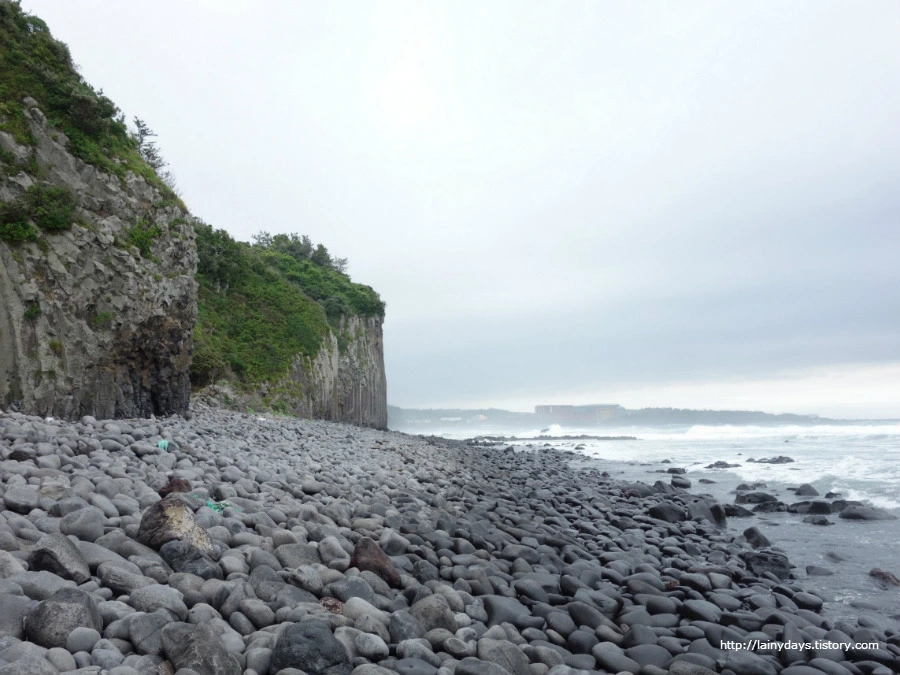 저 멀리 절벽 끝에 주상절리도 보인다. 저것도 제주도랑 유사하다. 못 믿겠다고? 왼쪽 사진은 아이슬란드의 주상절리고, 오른쪽 사진은 제주도의 (갯깍) 주상절리대다. 해변 풍경도 그렇고, 절벽 끝에 생성된 것도 그렇고 정말 닮았다.