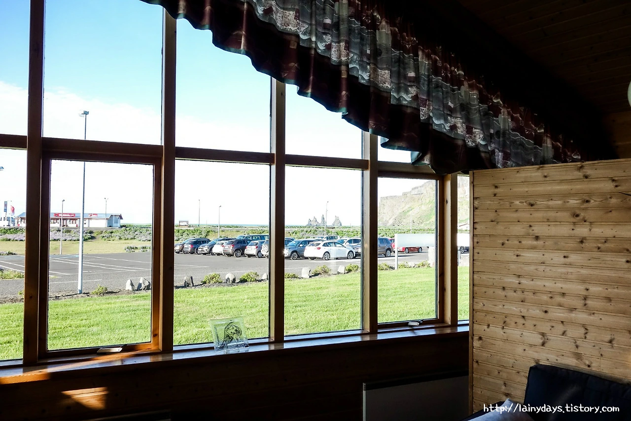 너무나도 아름다웠던 호텔 아이슬란데어 비크. 거실에서 레이니스드란가르가 보인다. 날씨가 맑으면 가시거리가 길어져서 더욱 아름다운 풍경을 볼 수 있구나.