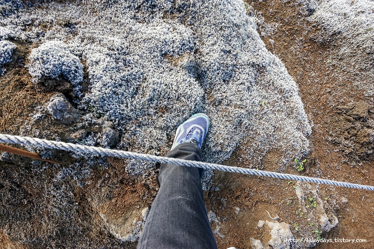 용암이 흐른 뒤 약 200년의 세월은 굳어버린 용암 위에 새로운 생명을 낳았다. 자세히 보면 용암이 굳은 돌덩이 위로 포실포실한 풀? 털? 같은 게 나있는 게 보인다. 밟으면 먼지를 흩날리며 푹푹 들어간다.