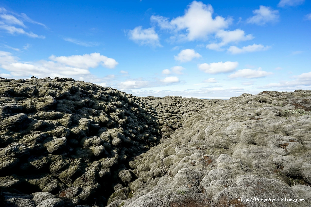 뭔가 한눈에 보기에도 용암이 뭉글뭉글 흐르다가 굳어버린 것 같은 풍경. 다른 사람들도 우리와 같은 것을 느꼈는지 갓길에 차를 주차하고 구경 중인 사람들이 꽤나 많았다. 대략 안내판을 보니 멈춰 선 곳은 카틀라 지오파크.라키 화산에서 흘러내려온 용암으로 보인다.