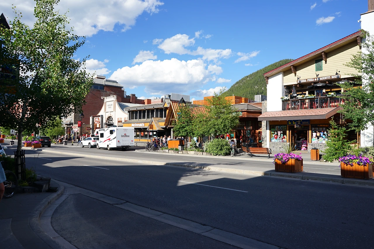 캐나다 벤프는 벤프 국립공원 여행의 중심지다. 이곳을 기점으로 주변의 여러 관광지를 돌아다니면 된다. 만약 캠핑카 여행이 아니었다면 나 역시 숙소를 벤프에 잡았을 거다. 그중에서도 벤프 다운타운은 로키를 찾는 여행객들이 잠시 들러 끼니를 해결하고 쇼핑을 하며 잠시 휴식을 취하기 좋은 곳이다. 인구가 대략 9,000명 정도 되는 작은 마을 벤프에서 가장 붐비는 곳이기도 하다.