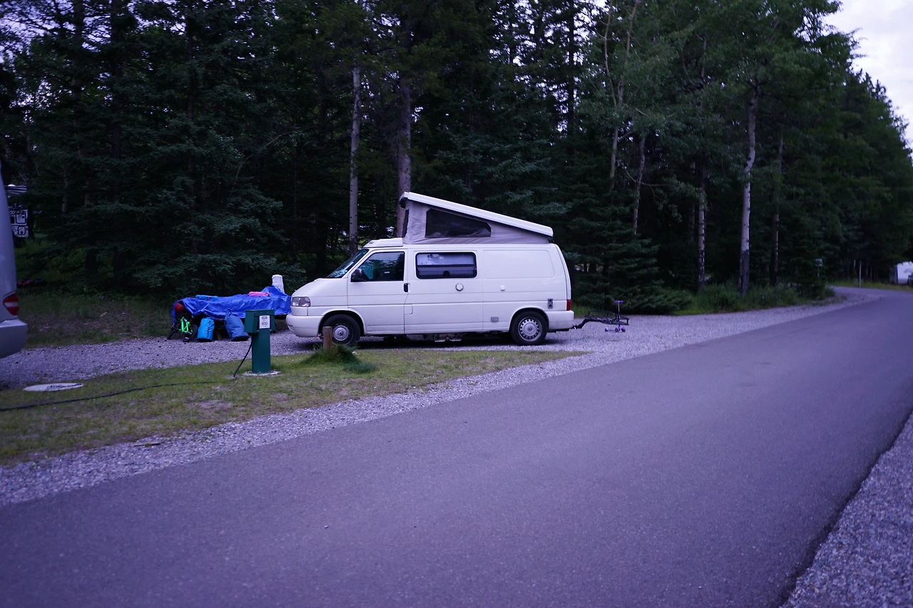 캠핑카에서 보내는 첫날 밤. 잠이 쉬이 오지 않아 잠시 새벽에 밖으로 나와본다. 캠핑장 안에는 드문드문 가로등이 켜져 있다. 캐나다까지 잘 도착했다는 사실과, 캠핑카를 잘 렌트하고 국립공원도 무탈하게 입장하고, 걱정되었던 캠핑카 운전도 생각보다 쉬웠고 전원이나 식수 연결 등도 처음에는 어려웠지만 곧잘 문제없이 해내었다.