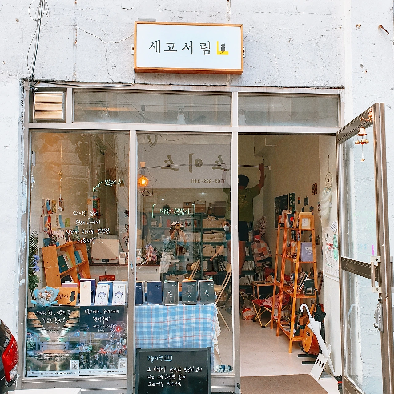 약속이 있어서 신대방에 들렀는데, 이 동네에 제대로 와 본 건 처음이라 바로 집에 가려니 못내 아쉬웠다. '제발, 제발..(있어라)!' 하는 마음으로 서점을 검색했더니, 4월부터 열었다는 새고서림이 마중을 나와 주었다. 한창 덥던 시즌. 서서 지도를 보던 자리와는 거리가 좀 있었지만, 망설임보다 두 발이 앞서가고 있었다. 보기도 전에 반가웠던 오후의 서프라이즈 목적지.
