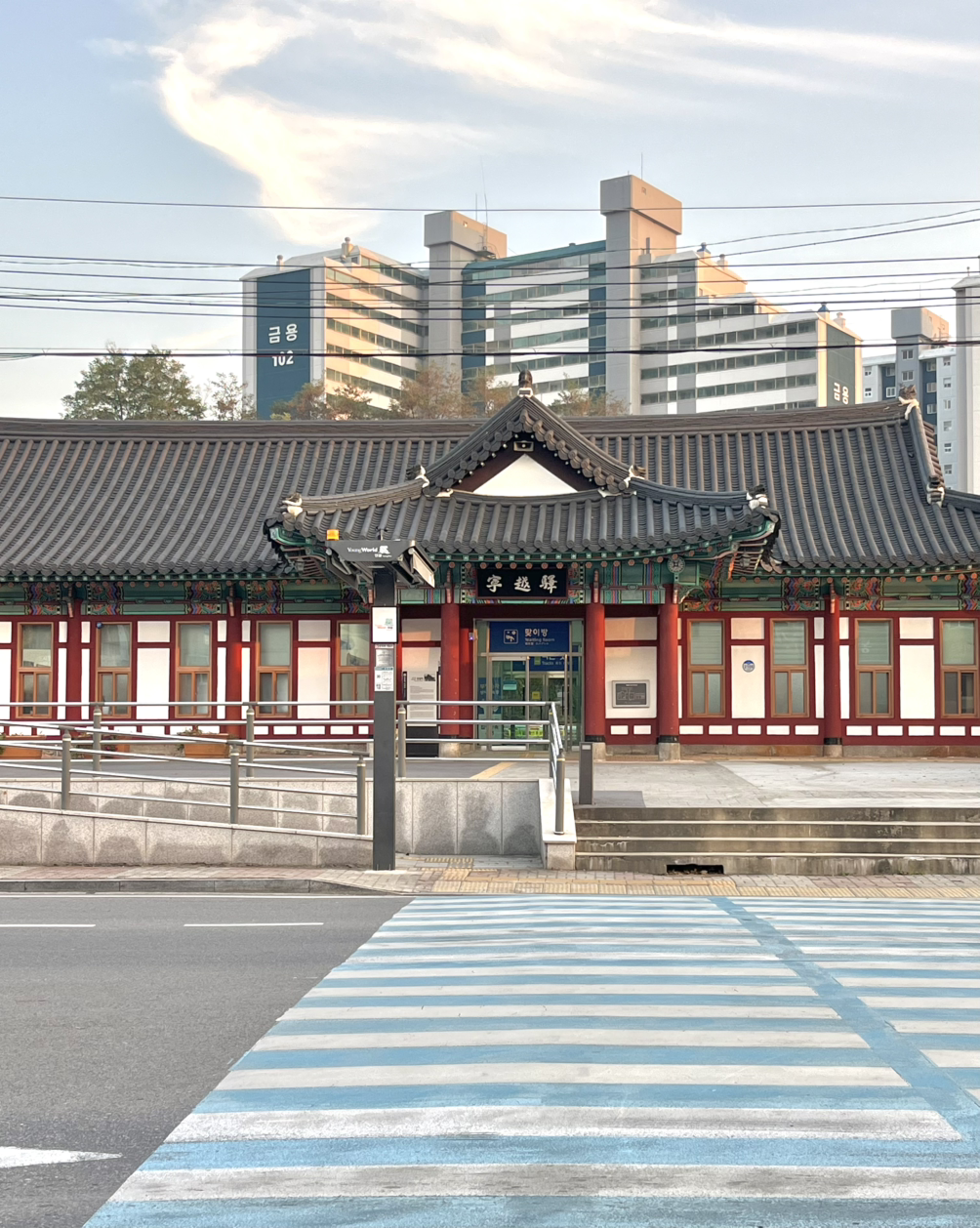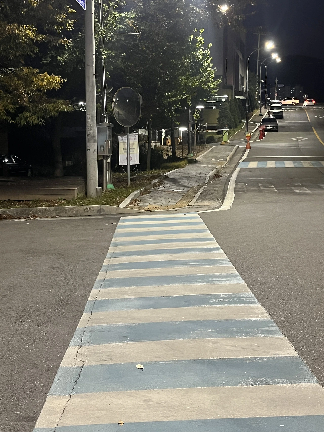 영월에서 발견한 귀여운 포인트는 하늘색 횡단보도이다. 마치 영월 같기도 한 색이다.