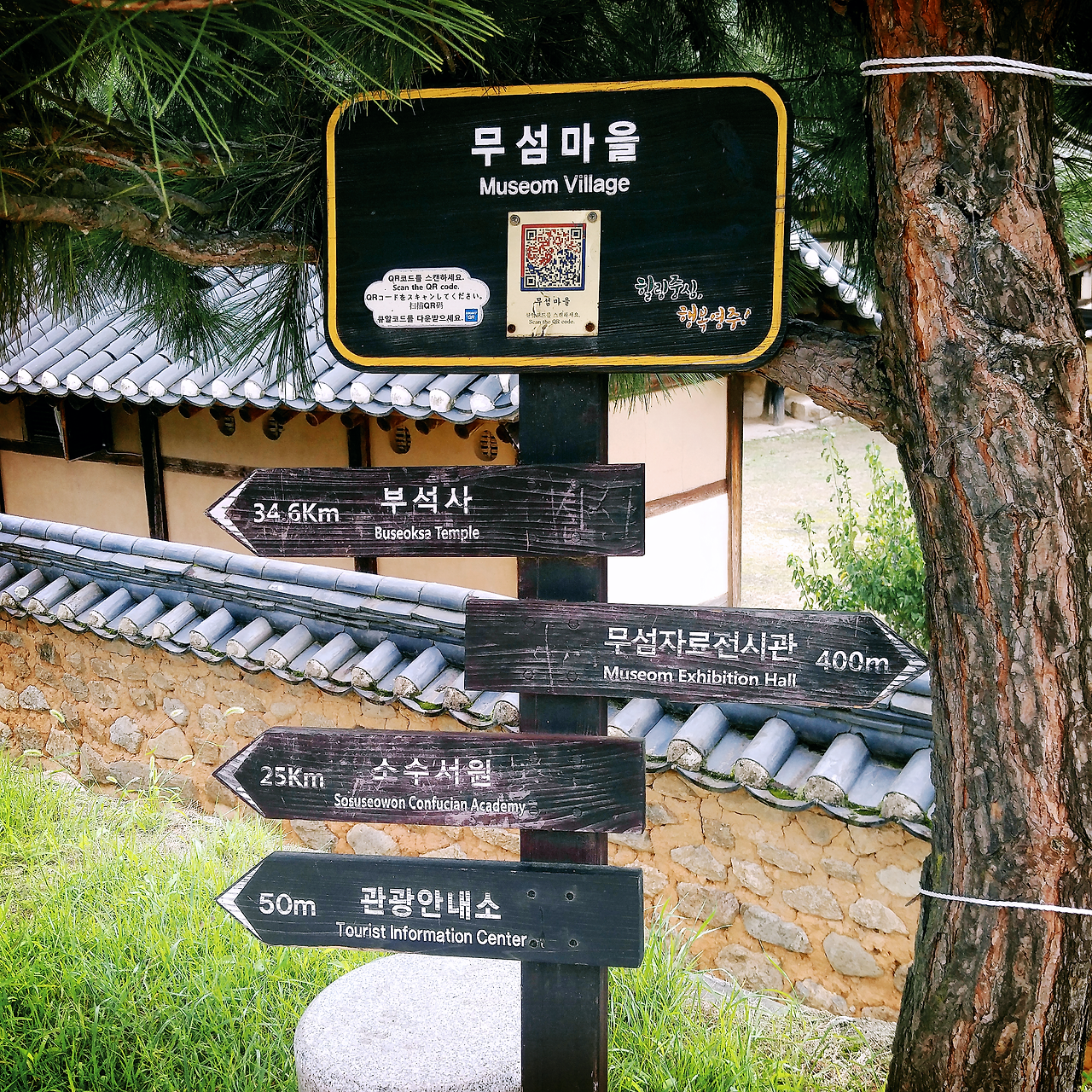 다리를 건너자 무섬마을이라는 표지판이 있었다. 그 밑으로 부석사와 소수서원의 방향과 거리도 표시되어 있었다. 그런데 정작 무섬마을을 관광하려면 어느 쪽부터 시작해야 하는 건지 헷갈렸다. 처음부터 무섬자료전시관에 가고 싶지는 않았다. 왠지 어디에서나 볼 수 있을 법한 뻔한 전시관일 것만 같았기 때문이다. 나는 우선 관광안내소 쪽으로 걸어갔다. 아까 버스에서 배낭을 짊어지고 내린 아저씨가 그 안에 앉아 계셨다. 이번에도 제대로 된 사람을 따라왔다는 생각에 괜히 기뻤다.
