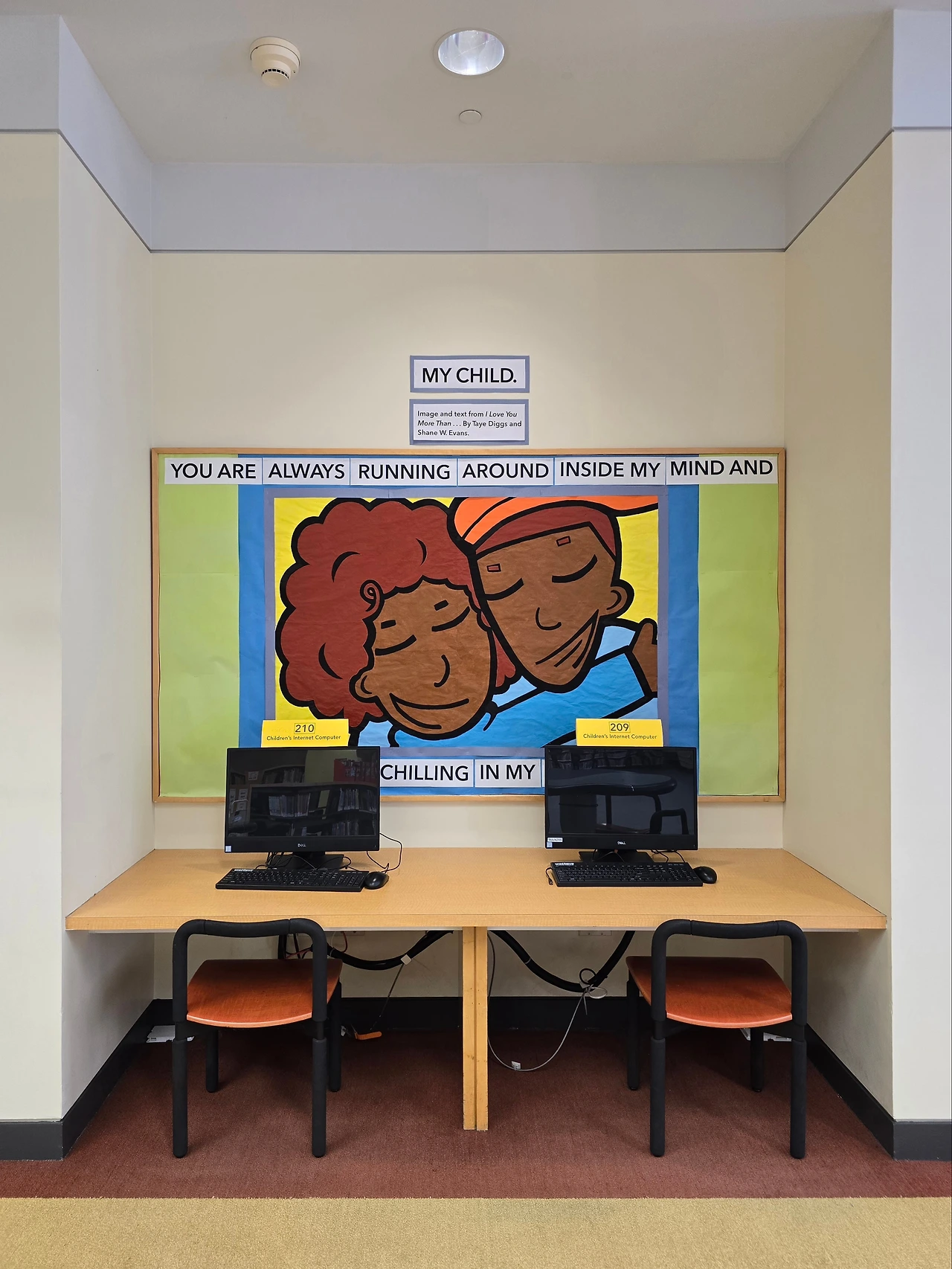 2층엔 어린이 전용 열람실이 있다. 초록색 벽에 아기자기한 책 표지들과 'Ready for your next read?' 라는 문구가 붙여져 있다. 당장이라도 다음에 읽을 책을 뽑아두고 싶다. 아이들을 위한 독서 게이미피케이션이 가미된 흥미롭고 재치있는 벽보다.