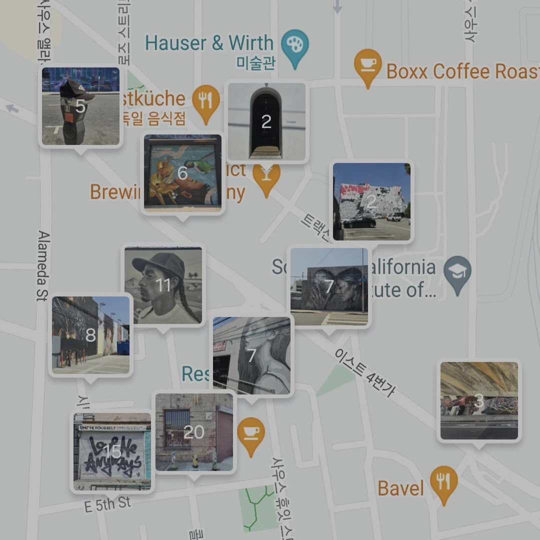 LA 공항 도착 후 숙소에 짐을 실어 보내고 바로 Arts Distract(@Post)에 내렸다. 미국 땅을 밟자마자 눈앞에 펼쳐지는 이색적인 풍경을 짜잔- 연출해보고 싶었다. 그렇게 휑한 거리에 어리둥절 홀로 내던져졌다. 뚜벅이 여행의 첫걸음이다.