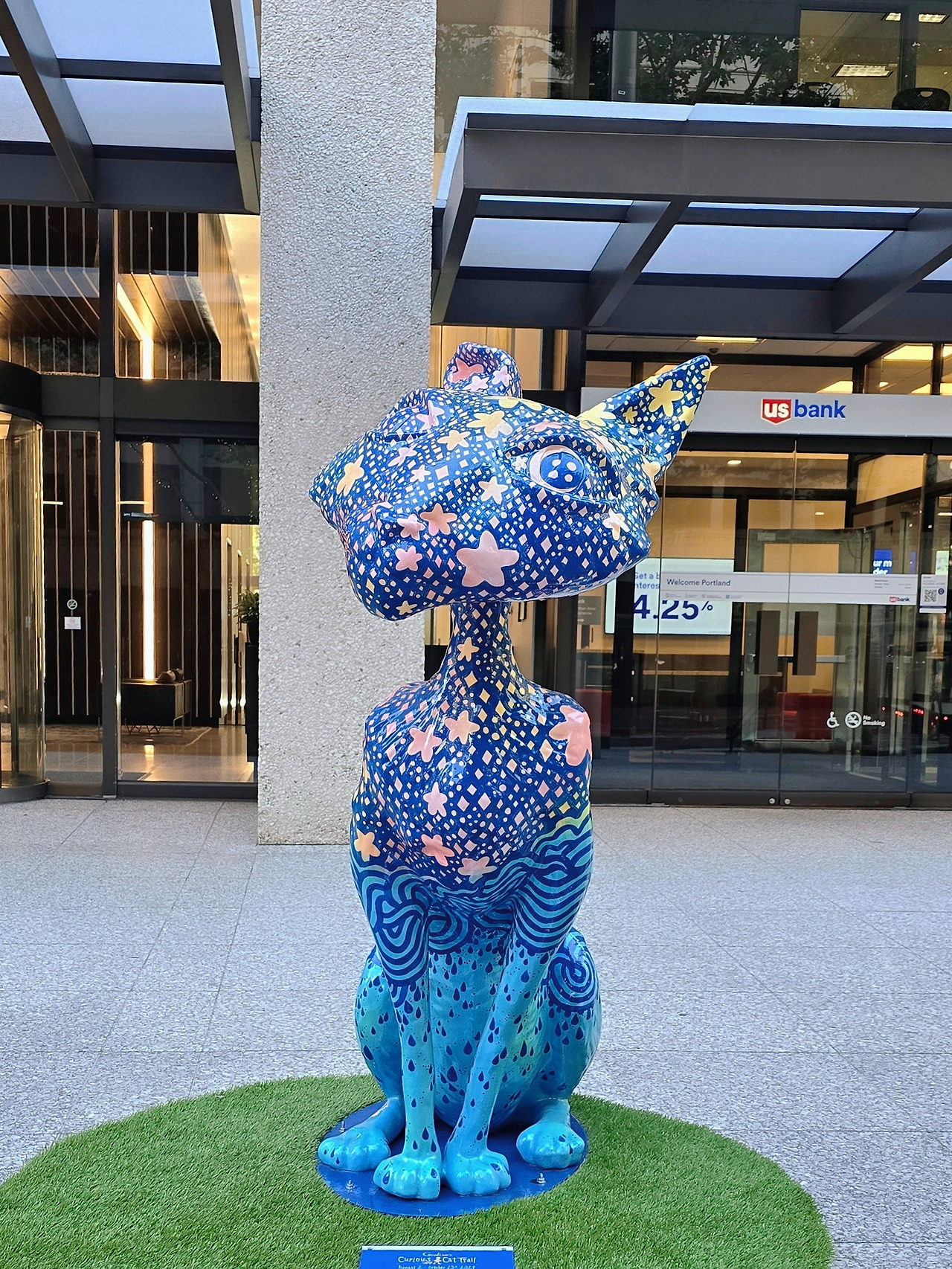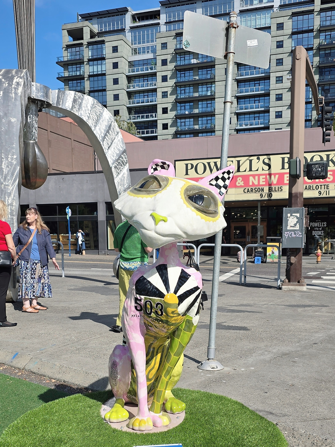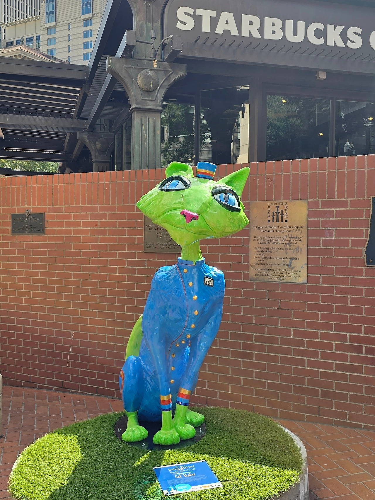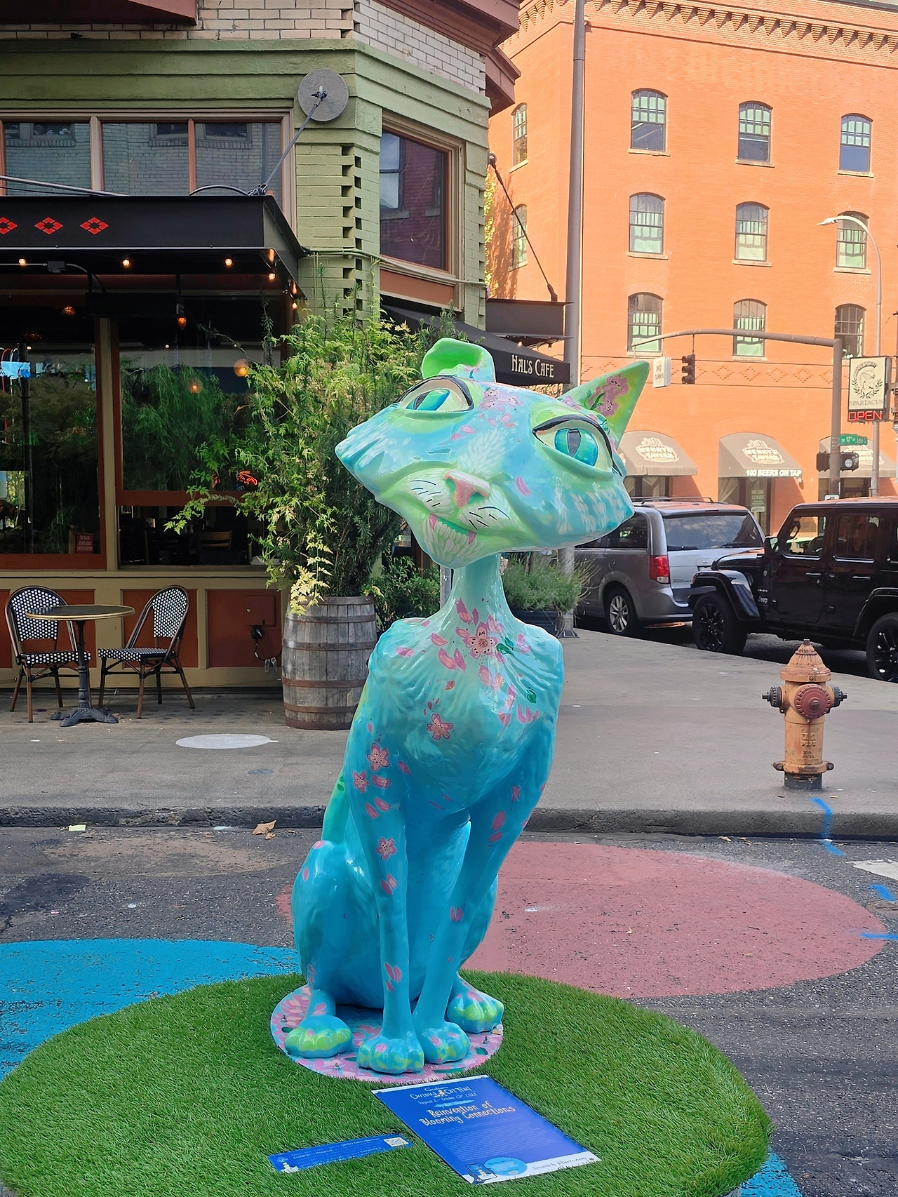 서점과 도서관 외에는 거리를 계속 걸었는데 불쑥불쑥 고양이 동상들이 튀어나왔다. 코렐라인의 호기심 많은 고양이 트레일(Coraline's Curious Cat Trail)이다. 2024년 8월 2일부터 10월 13일까지 오리건주에서 진행된 임시 예술 설치물이라고 한다. 덕분에 돌아다니며 마치 도장깨기를 하는 듯한 재미를 붙여볼 수 있었다.