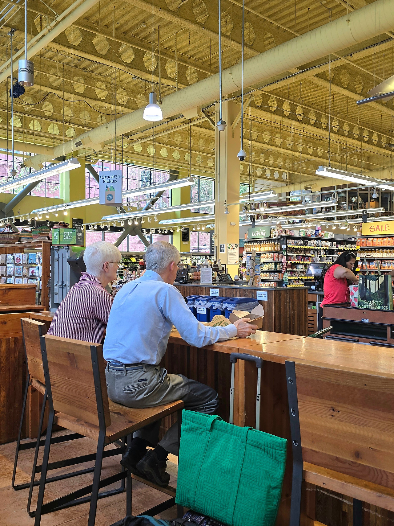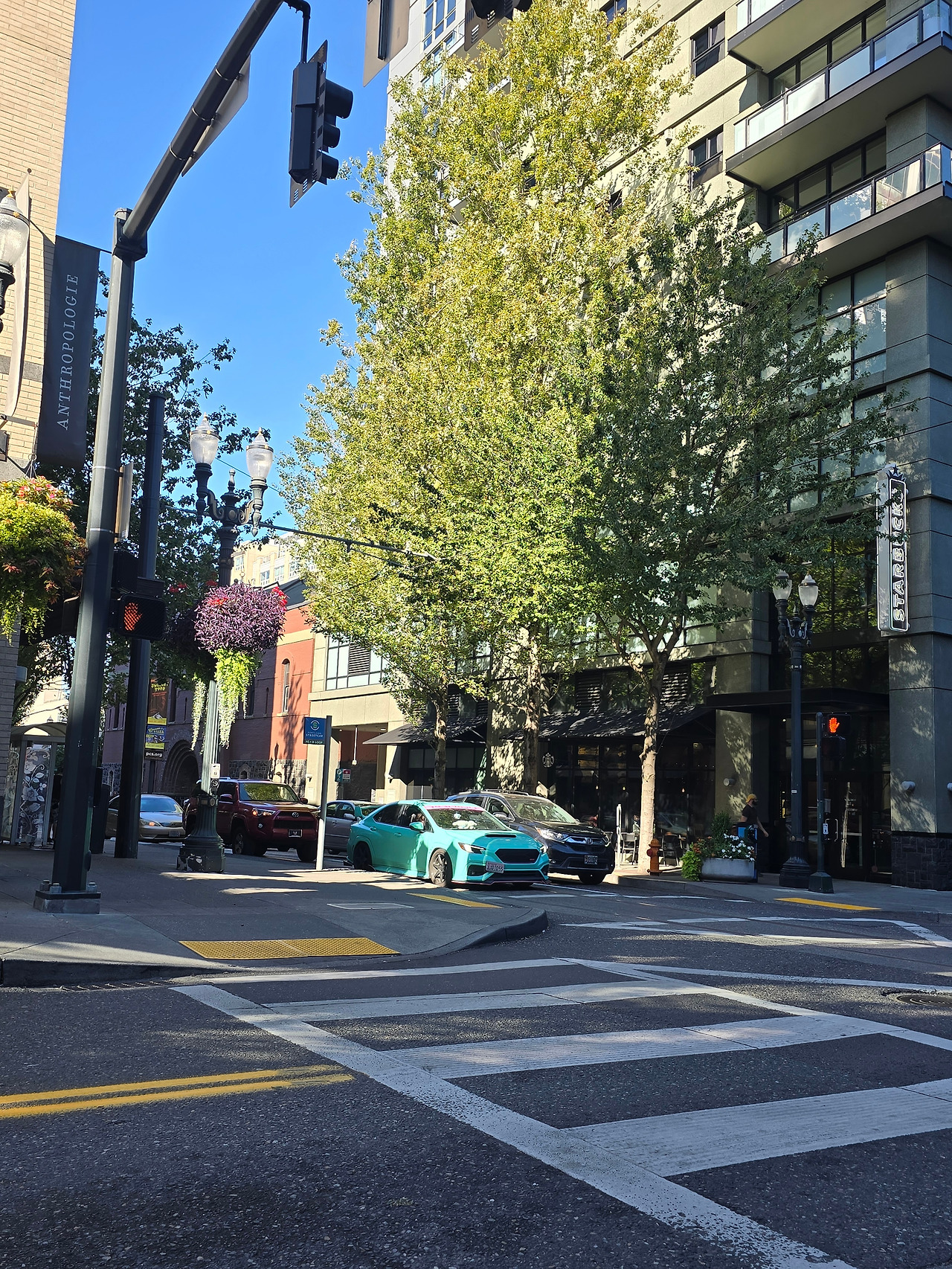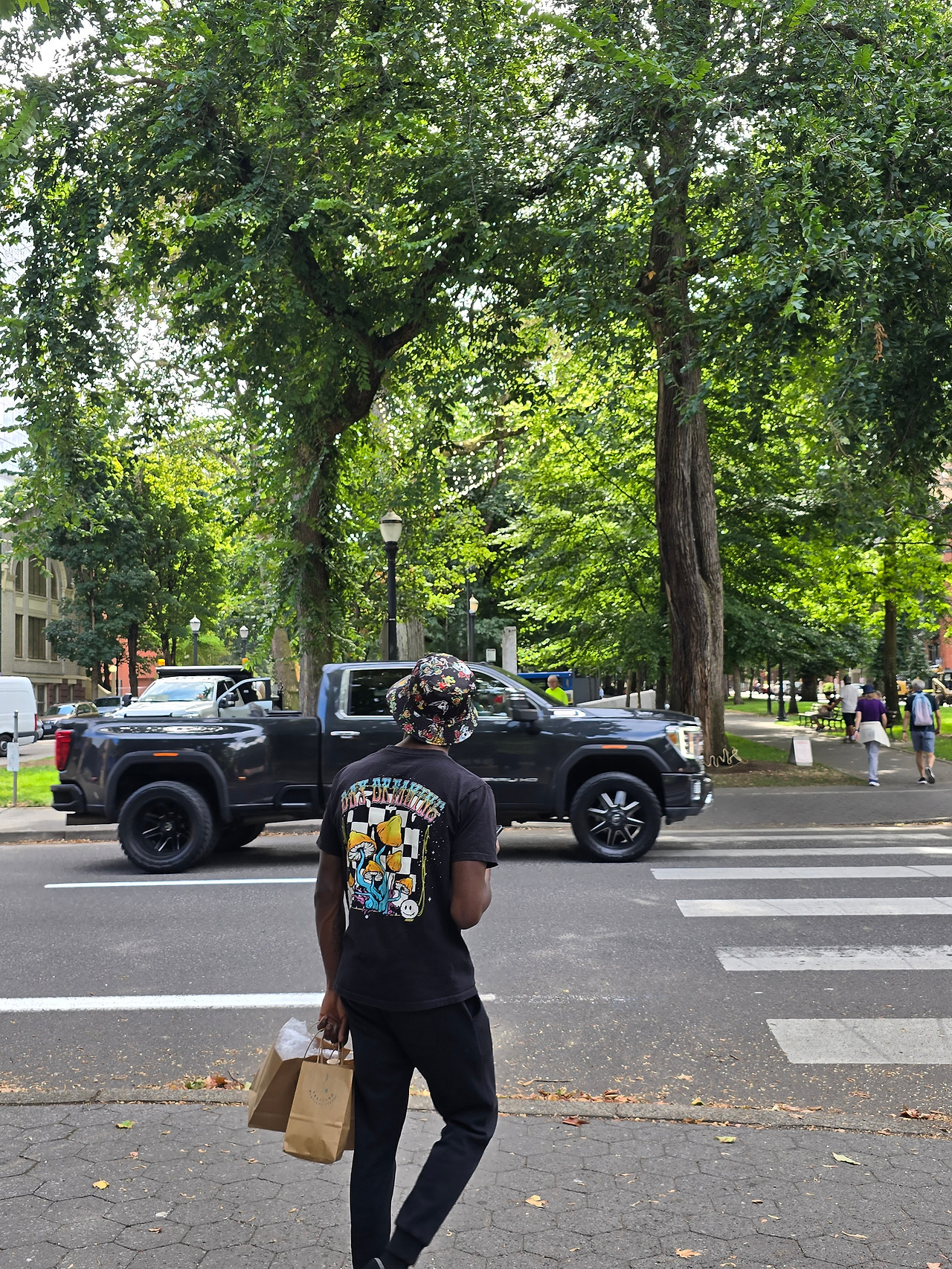푸드 카트에서 끼니를 떼우려는데 사진을 또 열심히 찍고 있자 앞자리에 앉은 시민이 대화를 걸어왔다. 정말이지 공격성 Zero(0)의 여행객 티가 많이 나나보다. 그분은 로스앤젤레스에서 넘어온지 4년이 좀 넘었는데 포틀랜드에서 계속 살고 싶다고 했다. 이유를 묻자 세금 혜택(Sales Tax가 없다)과 여유로운 분위기, 그리고 자연이 어우러진 도시 풍경을 꼽았다. 자연이라니? 지금껏 거리를 돌아다니며 자연을 느껴본적은 없었는데. 사진들을 꺼내어보니 신기하게도 울창한 나무들이 배경 곳곳에 심어져있었다. 통이 두꺼운 나무가 많다는 사실도 그제야 알았다.