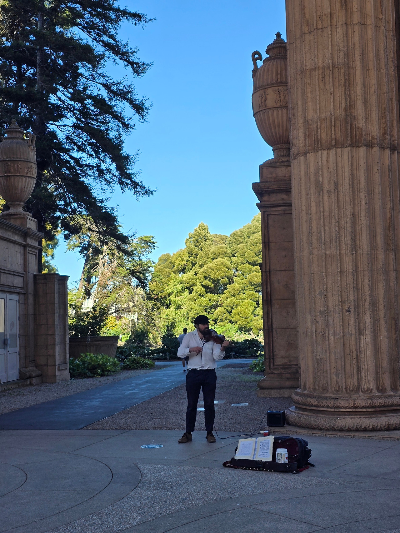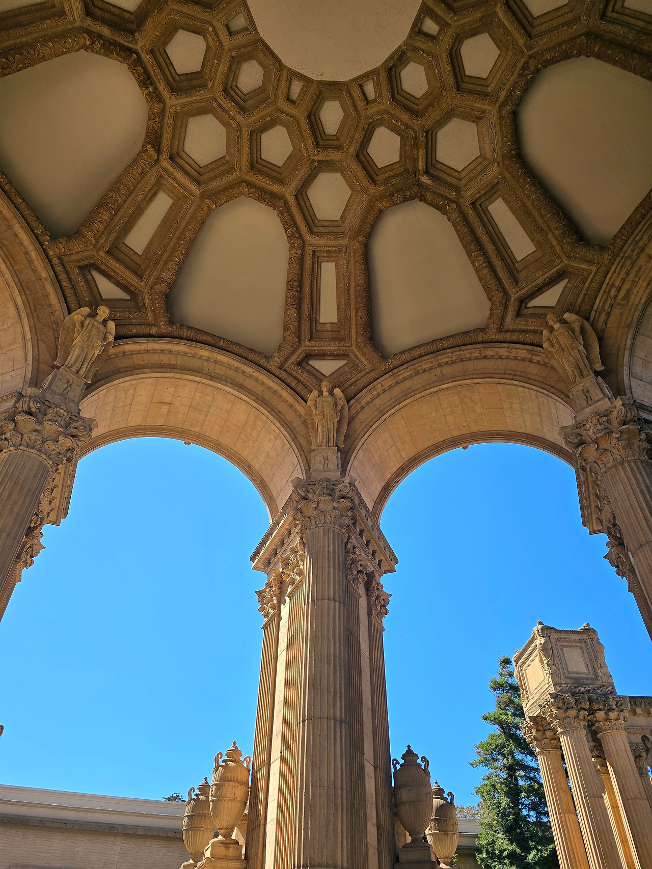 안과 밖 [3] 투어 후 숙소에 편히 바래다주겠다는 걸 사양하고 가장 오래 머물렀던 팰리스 오브 파인아트(Palace of Fine Arts Theatre). 한 버스커가 바이올린으로 클래식 음악을 연주하고 있었는데 궁 안에 울려퍼지는 소리가 예술이었다. 상상을 해보자. 나는 지금 바람에 흔들 거리는 꽃과 나무를 지나 녹음 진 궁 안에 들어간다. 어디선가 들려오던 선율이 점차 선명해지고 중심부에 들어서자 둥근 천장 아래로 현의 노래가 공명한다. 바깥은 빛이 일렁이는 물결에 눈이 부시고 새들이 떠다니지만 내가 서 있는 곳은 그늘 진 허와 음악이 흐르는 시간 속에 멈춰 있다.