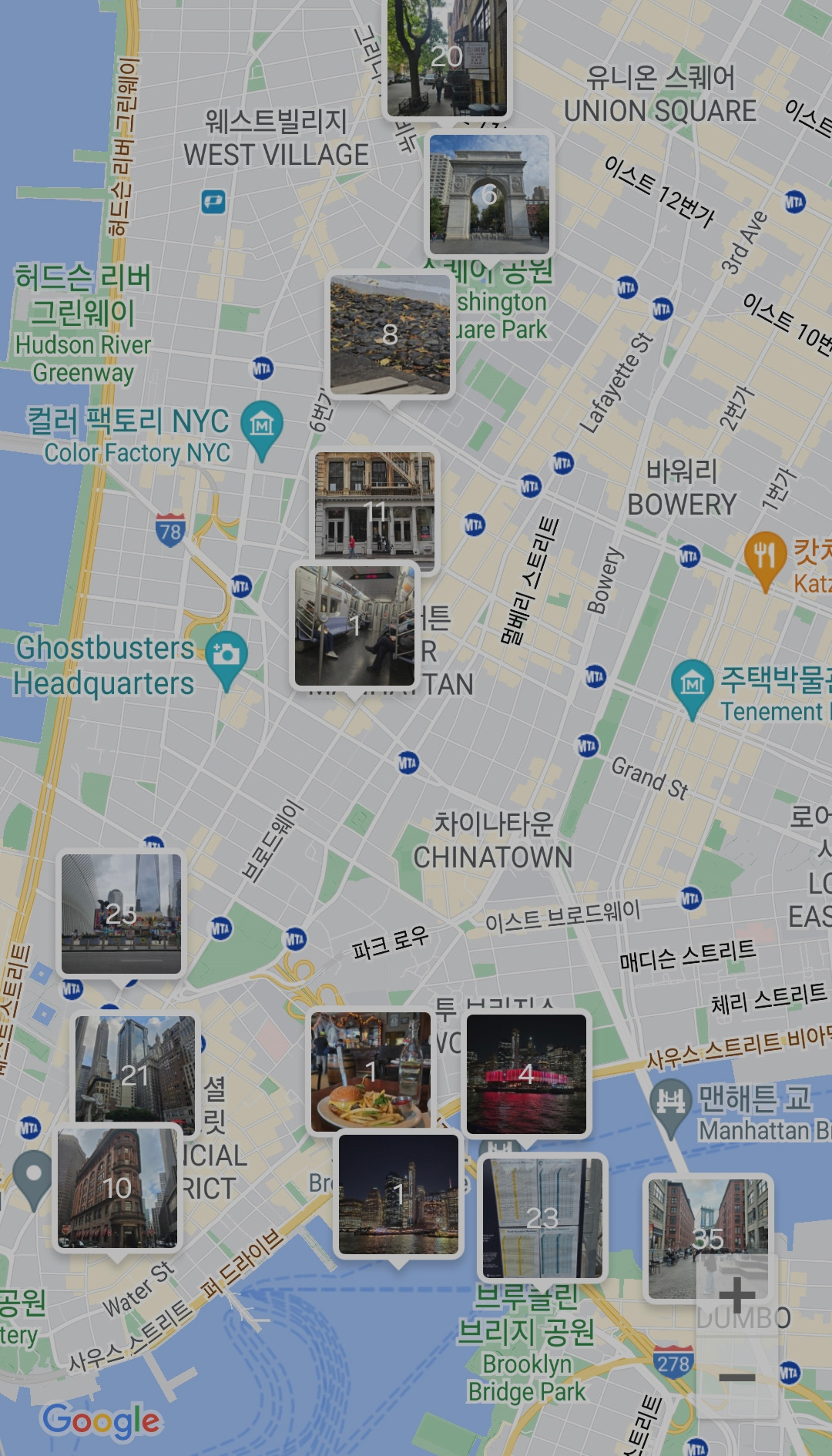아침 일찍 제퍼슨 마켓 도서관 방문으로 시작. 소호 거리, Financial District의 오큘러스, 황소동상 등 랜드마크 6곳을 찍고 브루클린 브릿지를 건너 덤보와 선셋 감상 후 다시 페리를 타고 돌아와 써밋 전망대에서 야경을 즐기고 숙소로 돌아가는 길에 타임스퀘어와 브로드웨이를 구경했다. 어떻게 가능했을까? 긴 말이 필요없었다. 뉴욕이니까.