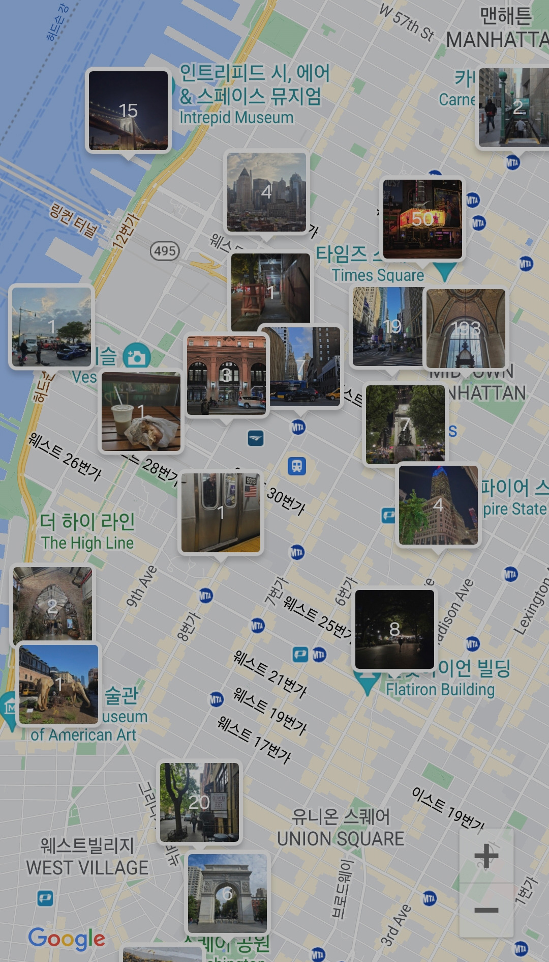 뉴욕에선 고삐 풀린 망아지처럼 돌아다녔다. 긴장감, 화려함, 바쁜 행인들. 그 에너지에 홀린듯 매일 밤낮으로 거리를 활보하며 끊임없이 걸었다. 이곳에 오기 전 시카고에 잠시 방문하여 휴식을 취하고 무거운 캐리어를 두고 와 마음이 한 결 가벼워 진 덕도 있었다. 4박 5일 일정을 끝으로 돌아갈 곳이 있다는 생각에 시간과 건강의 압박 또한 없었다. '마음 놓고, 마음 껏 누벼보자.'