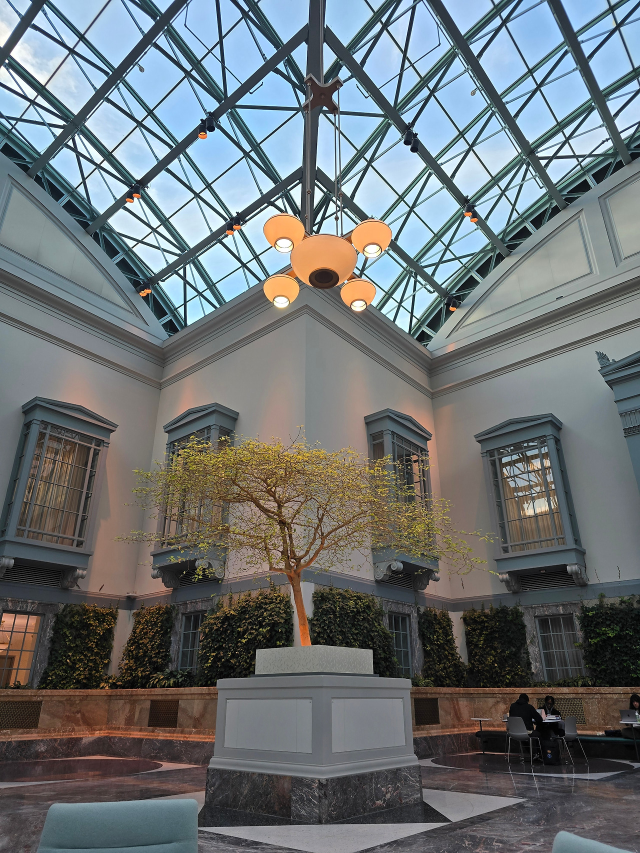 시카고 공립 도서관의 꽃, Winter Garden. 9층 높이의 유리 천장과 실내 정원이 컨셉인 이 공간은 책을 읽거나 휴식을 취하기에 탁월한 장소다. 시애틀 공립 도서관의 스타일과도 흡사한데, 나무에 내리쬐는 주황 불빛이 조금 더 정원의 신비로움을 느끼도록 만들어주었다. 겨울에는 이곳에서 특별 문화 행사들이 열린다고 한다. 하워드 워싱턴 전시홀과 스페셜 콜렉션 또한 감상할 수 있는데, 내부 촬영은 금지되어 있다.