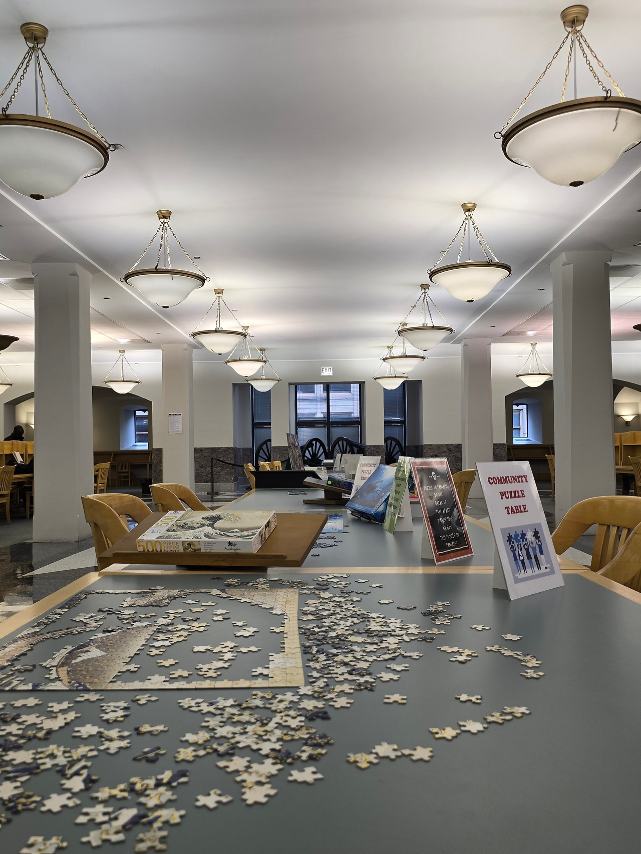 6층 홀 부근엔 여러 퍼즐게임이 테이블 위에 놓여져 있다. 또한 1871년 시카고 대화재부터 건축의 역사, 각 근린주구의 변천사까지 다양한 역사 자료가 보관되어 있다. 도서관에서의 퍼즐게임은 상상해 본 적이 없는데, 30분간의 게임 끝에 도서관이야말로 제격인 장소라는 걸 이때 깨달았다.