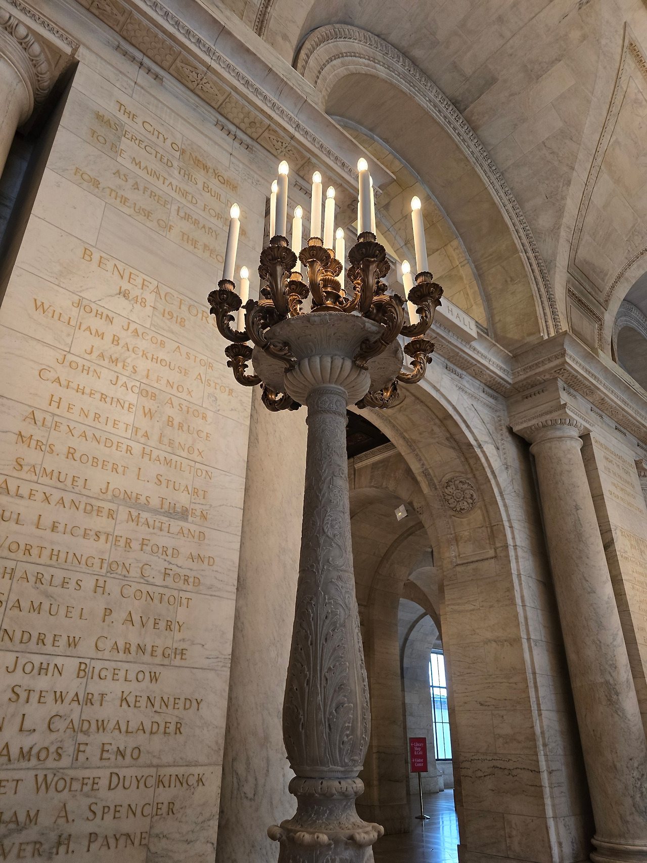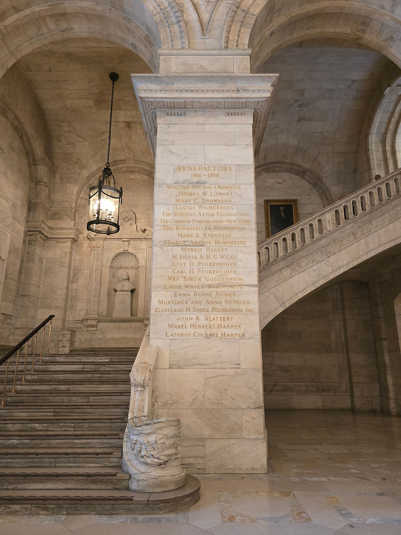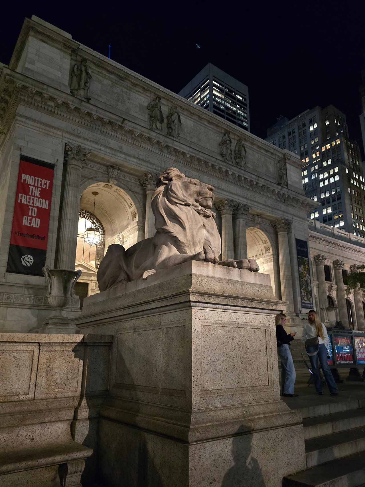 도서관의 규모와 분위기는 정문 입구에서 사자 조각상을 올려다볼 때부터 얼마나 거대하고 장엄할지 가늠할 수 있다. 두 사자상의 이름은 각각 'Patience', 'Fortitude'인데, 대공황 시기에 시장 피오렐로 라과디아가 뉴욕 시민들에게 필요한 덕목이라며 지었다고 한다.