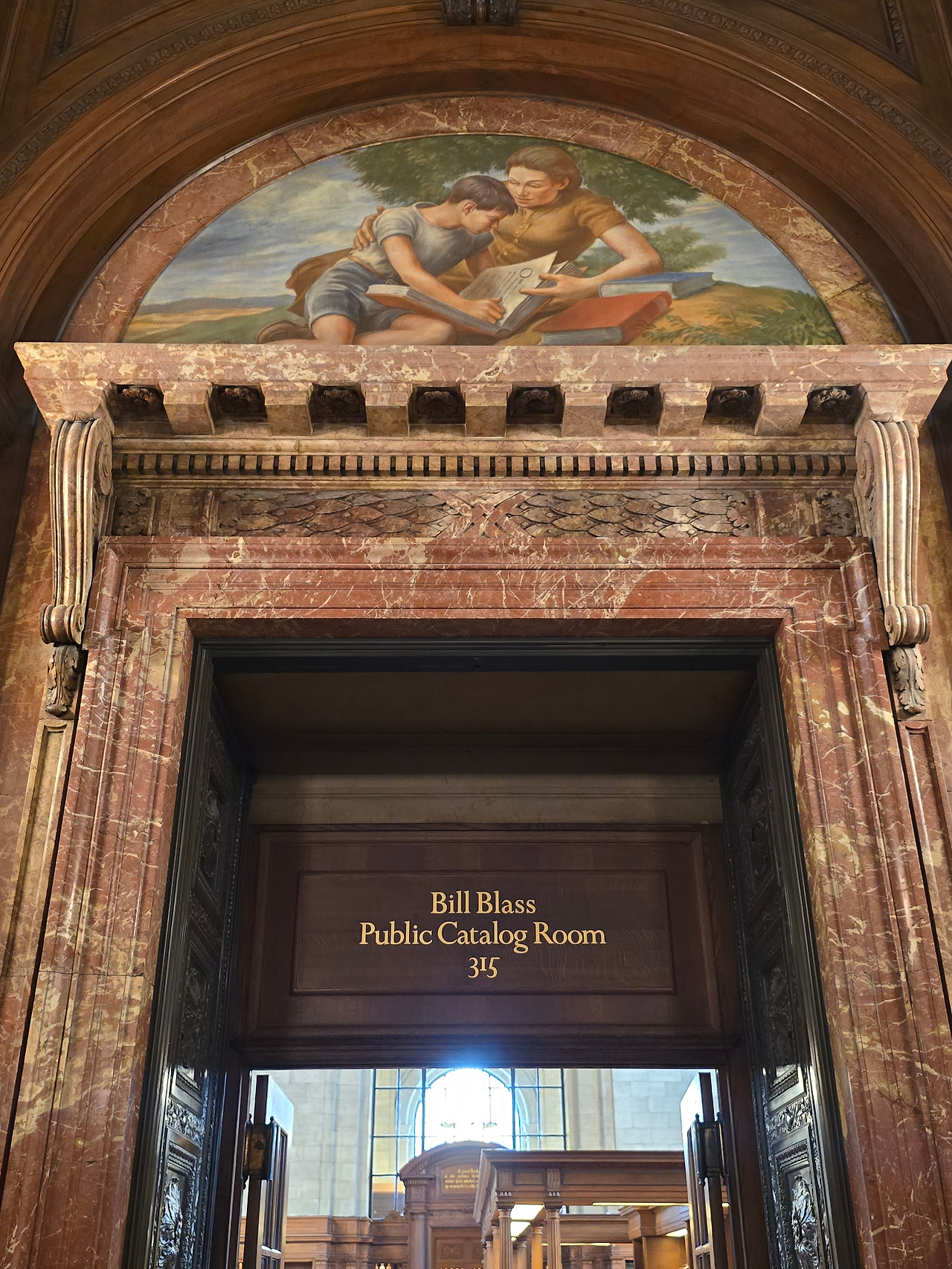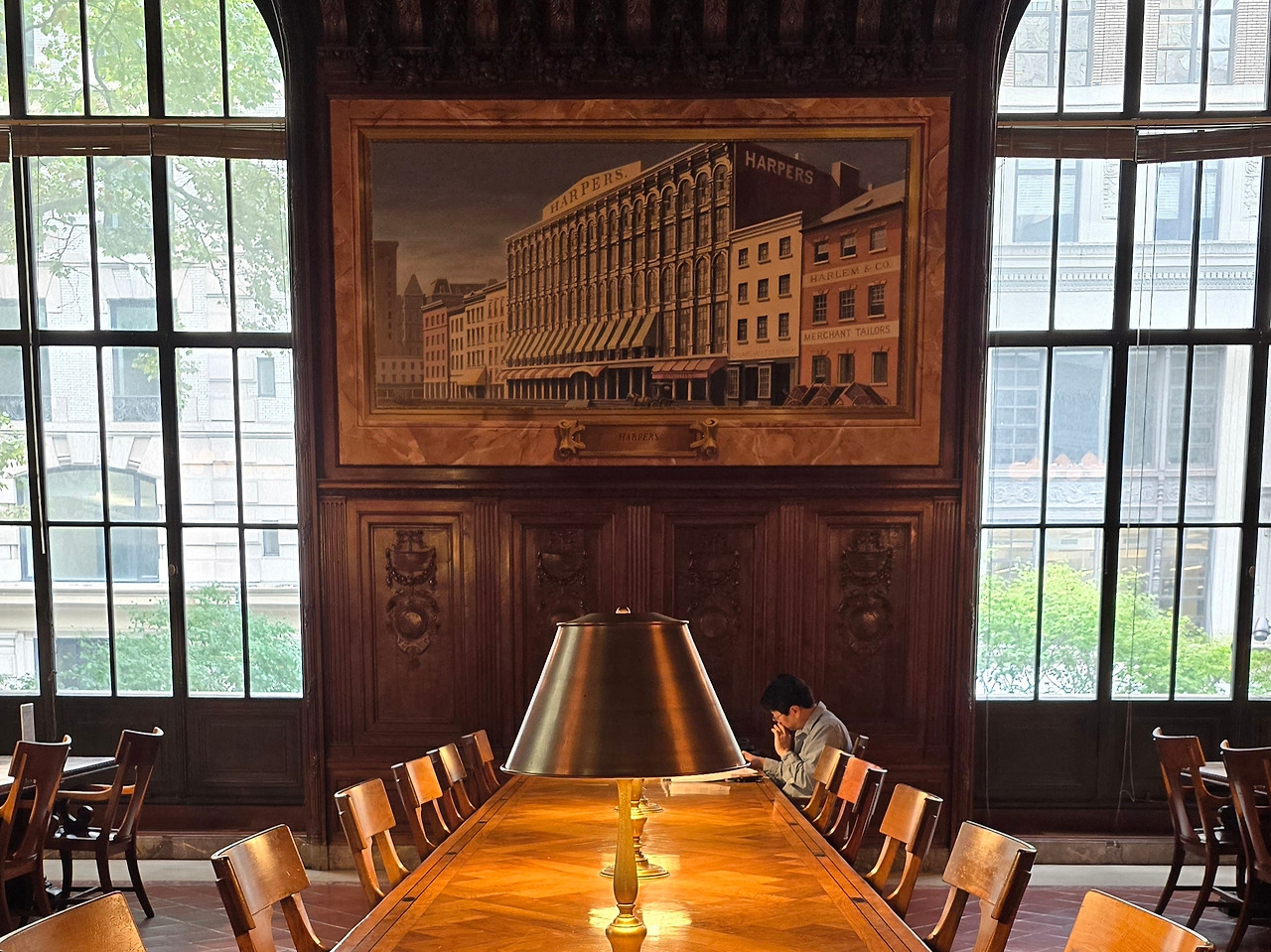 드윗 월러스 정기간행물실이다. 클래식한 샹들리에와 벽화, 고개를 갸우뚱거리는 금빛 램프가 눈에 띈다. 200여 종의 최신 잡지와 국내외 신문이 소장되어 있는 곳인데, 이용자들은 주로 조용한 스터디룸으로 사용하는 것 같았다. 너무 조용해서 발자국 소리가 들릴까 조심했다. 예쁘고 집중이 잘될만한 인테리어이지만, 작은 소리도 잘 울려 퍼지는 이곳에서 노트북을 놓고 작업한다면 키보드를 마음 놓고 두드릴 수 있을지 염려되었다. 간간이 투어 관람객들이 대거 들어와 사진을 찍고 나간다면 더욱 신경이 쓰일 테다. 하지만 한 번쯤 이런 아름다운 곳에서 독서와 공부를 해보고 싶다.