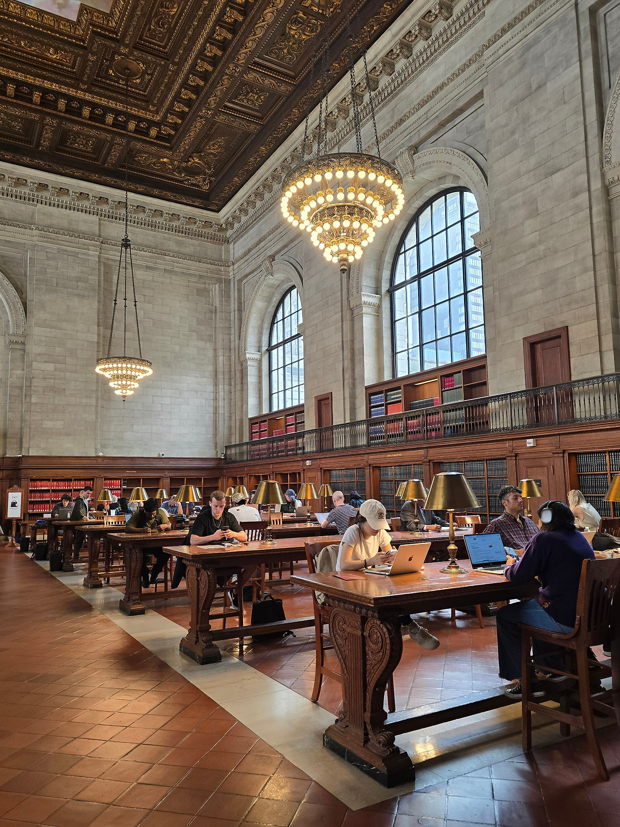 1895년에 설립된 뉴욕의 공립 도서관은 완벽한 관광 명소다. 도슨트 투어는 물론, 입장 시 긴 줄을 서 소지품 검사를 해야 들어올 수 있다. 열람실을 제외한 방문객의 대다수가 사진을 찍고 구경하는 관광객이라 하여도 무방하다.