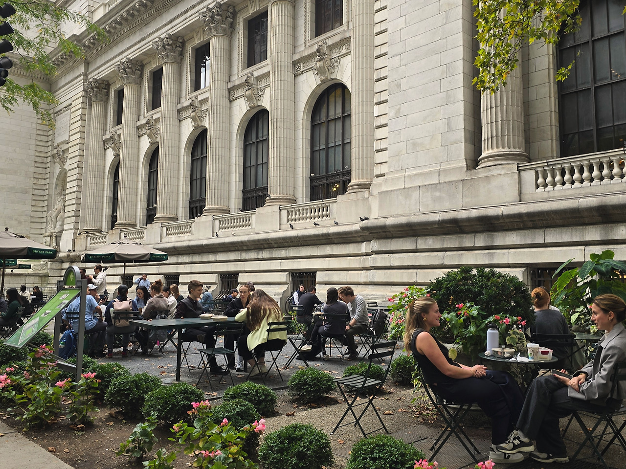 투어를 마치며. 관광객으로서 바라본 도서관과 이용객 입장에서 바라본 도서관의 느낌은 사뭇 달랐다. 비록 뉴욕 시민으로 이용을 해보지는 못했지만, 밖으로 나와 벤치에 앉아있는 자유로움이 반갑게 느껴졌다. 도서관은 아름다운 곳이었지만 관광으로 만족하기로 했다.