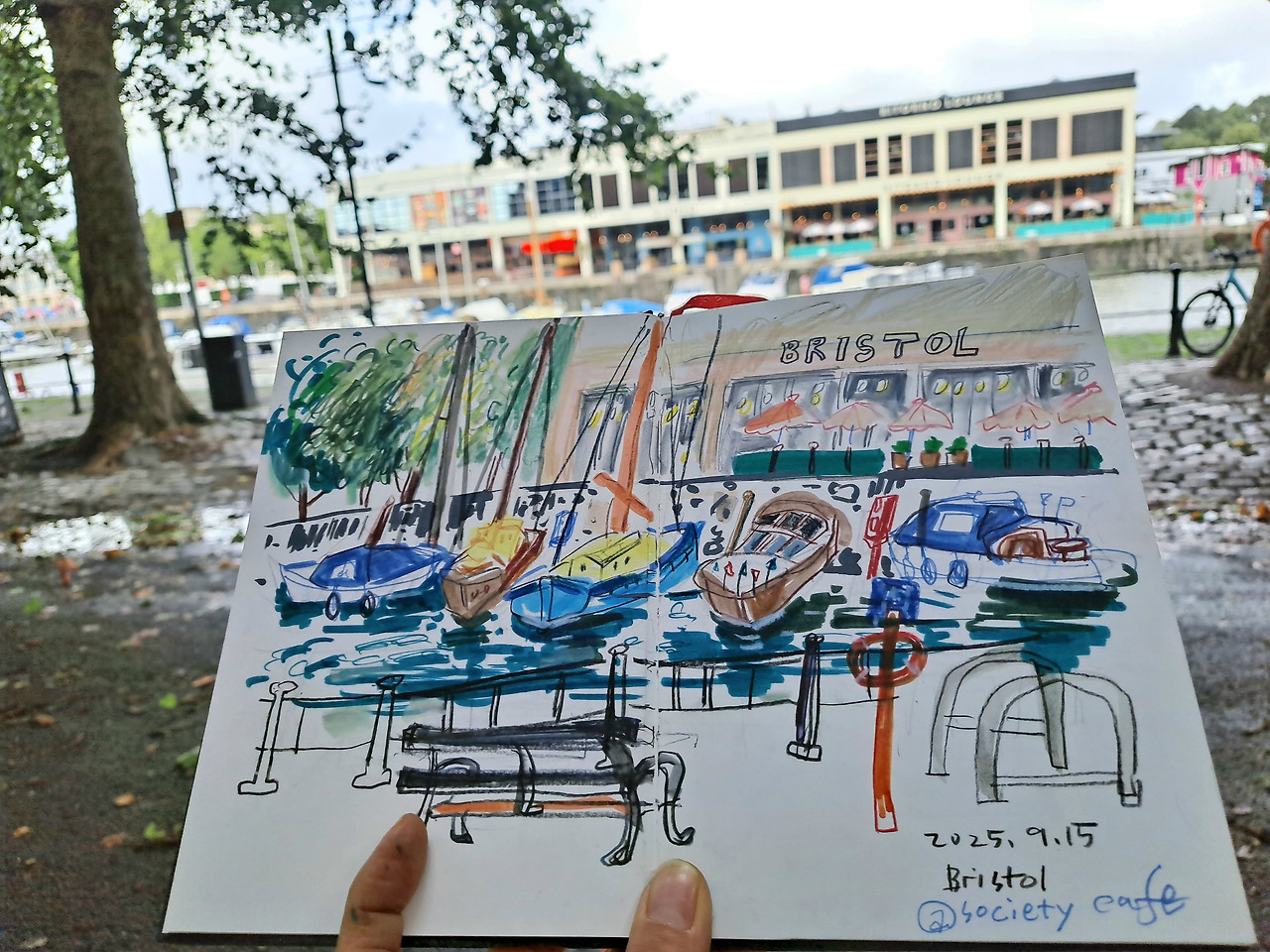런던과 기차로 한 시간 거리의 브리스톨에 내리니 역이 심상치 않다. 역이름은 템플미드, 2차 대전 때 폭격을 맞은 인근 템플 교화에서 그 이름이 유래되었다고 하는데 이름에 걸맞게 뽀쪽한 첨탑들이 역이라기보다 성당에 더 가깝다. 올려다보니 높은 곳의 창문틀들은 금방이라도 떨어질 듯 위태롭고 벽도 여기저기 떨어져 나가 마치 유적지 같다. 족히 100년은 됐을 건물을 보존만 하는 게 아니라 사용도 하고 있다니.. 여행자의 시선에서는 경이로움을 넘어 존경심마저 들게 한다. 오랜 시간을 품고 있는 공간이 주는 따스함에 잠시 젖었다 나오니, 날씨라는 현실이 기다리고 있었다. 비와 바람, 악천후 종합세트, 우산 조차 쓸 수 없다. 캐리어를 끌고 비바람을 헤치며 호텔로 가면서 ‘여행은 이런 거지 단맛이 있음 쓴맛도 있는 겨’ 울며겨자먹기로 생각을 바꾸니 비에 젖은 도시가 보인다. 런던과 한 시간 거리라는 게 실감 나지 않을 정도로 도시는 아기자기하다. 호텔에 체크인을 마치고 ‘온 김에’ 봐야 하는 랜드마크, 클리프턴 서스펜스 브리지(이름도 어려우니 그냥 클리프턴 현수교)로 갔는데 날씨 탓인지 관광객은 한 두 명뿐, 다리를 조금 걷다 포기, 우리 사전에 없는 택시를 불러 중심가로 갔다. 조그만 항구 카페에서 쉬면서 배 그려주고 (브리스톨은 해양도시), 저녁엔 펍에서 비 내리는 도시 바라보며 맥주 한잔. 기차역, 현수교, 항구카페, 펍, 기차시간 때우기용 쇼핑센터, 그리고 이틀 내내 비바람.. 아직은 생생한 브리스톨 여행은 시간이 지나면 비바람의 기억만 남을지도 모른다. 그래서 어반이 필요, 그리는 동안 내 몸에 새겨지는 풍경과 분위기, 냄새의 기억은 지워지지 않으니까..
