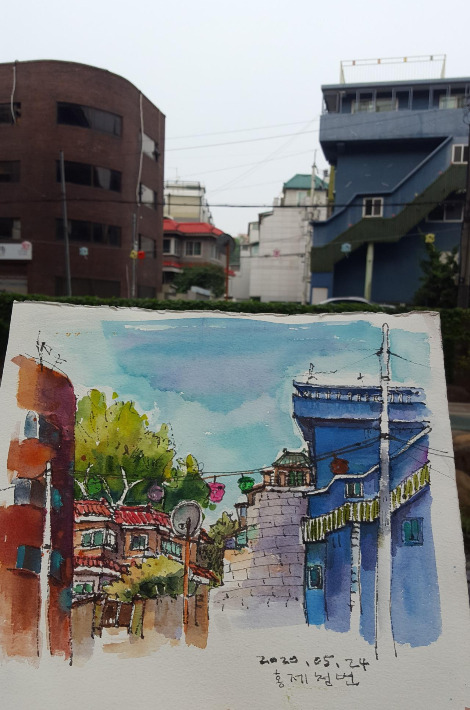 아파트 문만 나서면 갈 수 있는 홍제천은 사계절 다양한 자연의 모습을 볼 수 있어서, 멀리 갈 수는 없지만 그림 그리고 싶은 날, 혹은 잠깐 비는 자투리 시간을 쓰기에 안성맞춤이다.